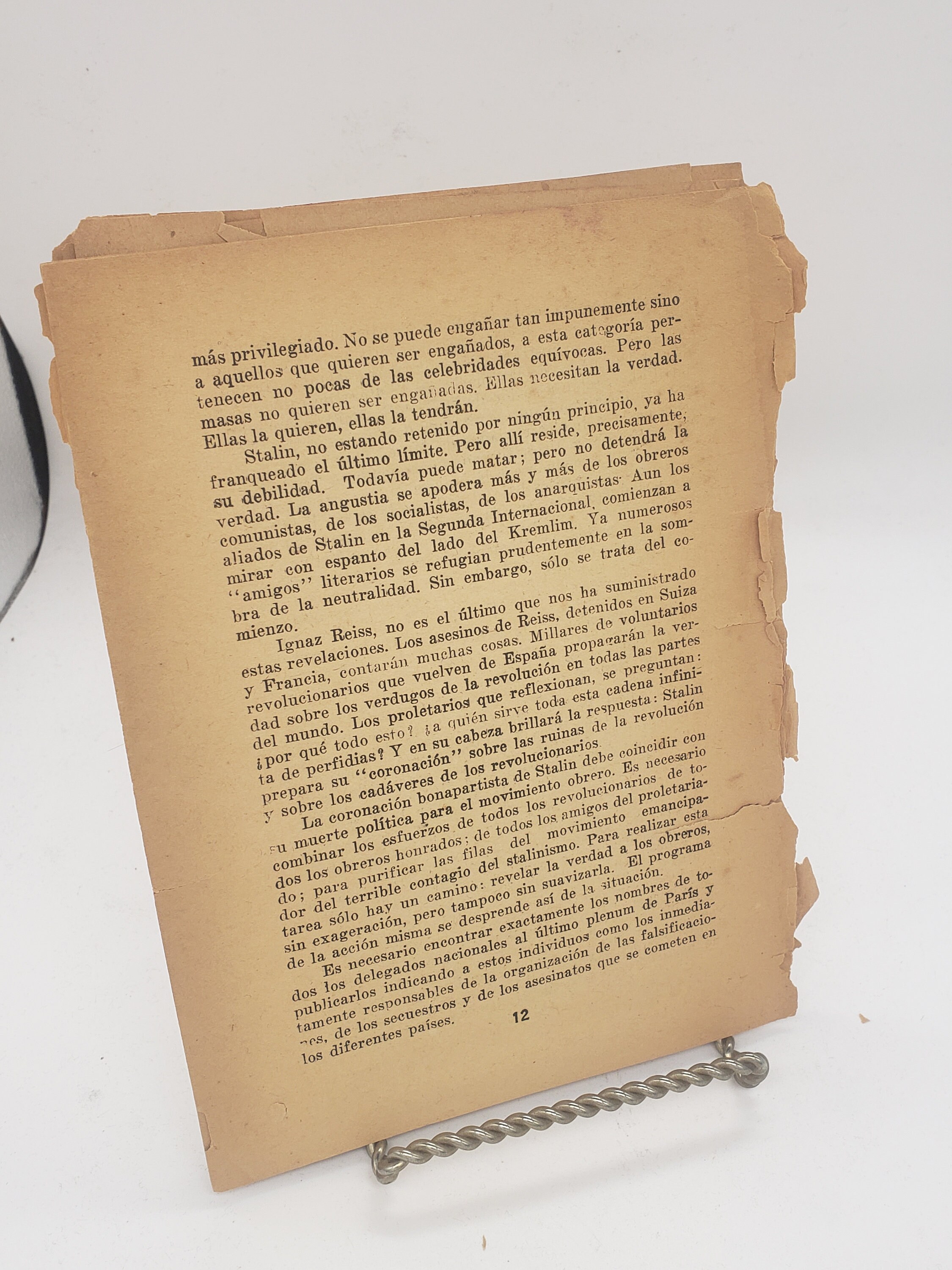This isn't merely a book; it's a tangible link to a legendary tale, the very book rumored to have led to Leon Trotsky's assassination by Stalin via a poisoned ice pick. Imagine owning a piece of history steeped in such intense drama and consequence. While the front cover originally suffered significant damage, it has been professionally repaired by a skilled bookbinder and is now nicely intact. There is also a small tear in the rear cover, but the book otherwise remains in good, readable condition, especially considering its age and historical significance.