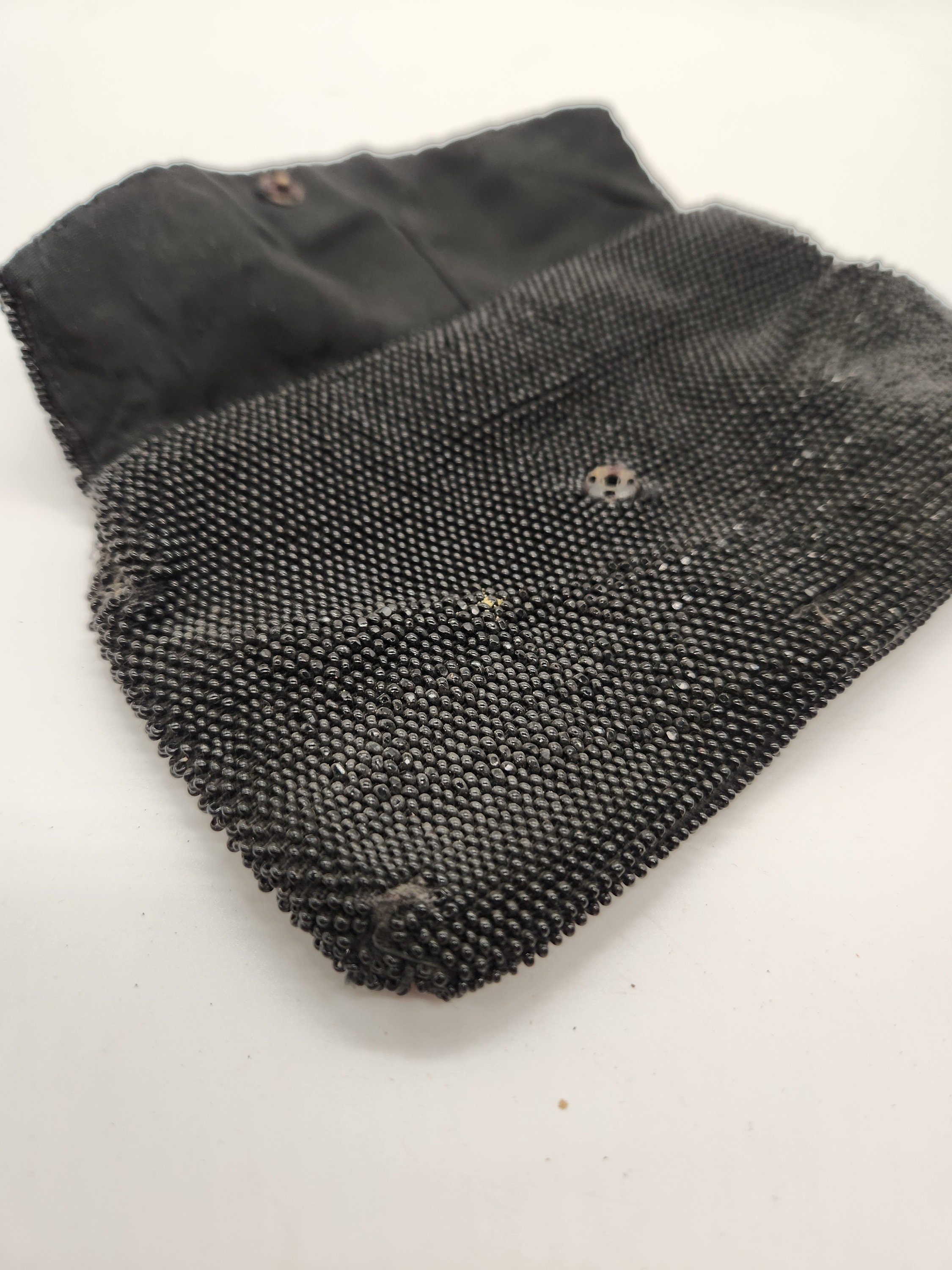 Vintage Black Beaded Purse, Evening Bag, Metal Clasp Black Beaded Purse, Vintage Beaded Purse, Black Bead Purse, Flapper Purse, Black Purse