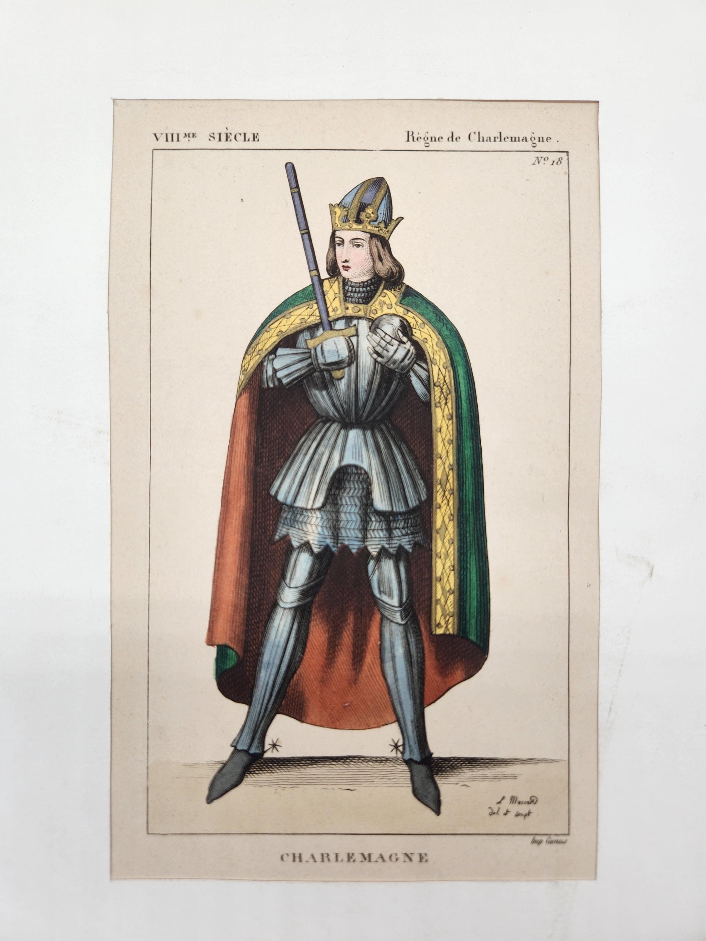 1836 Hand Colored Steel Engraving, Portrait of Charlemagne, Charles I The Great, Unknown Artist, 19th Century Engraving, 6"x9" Print