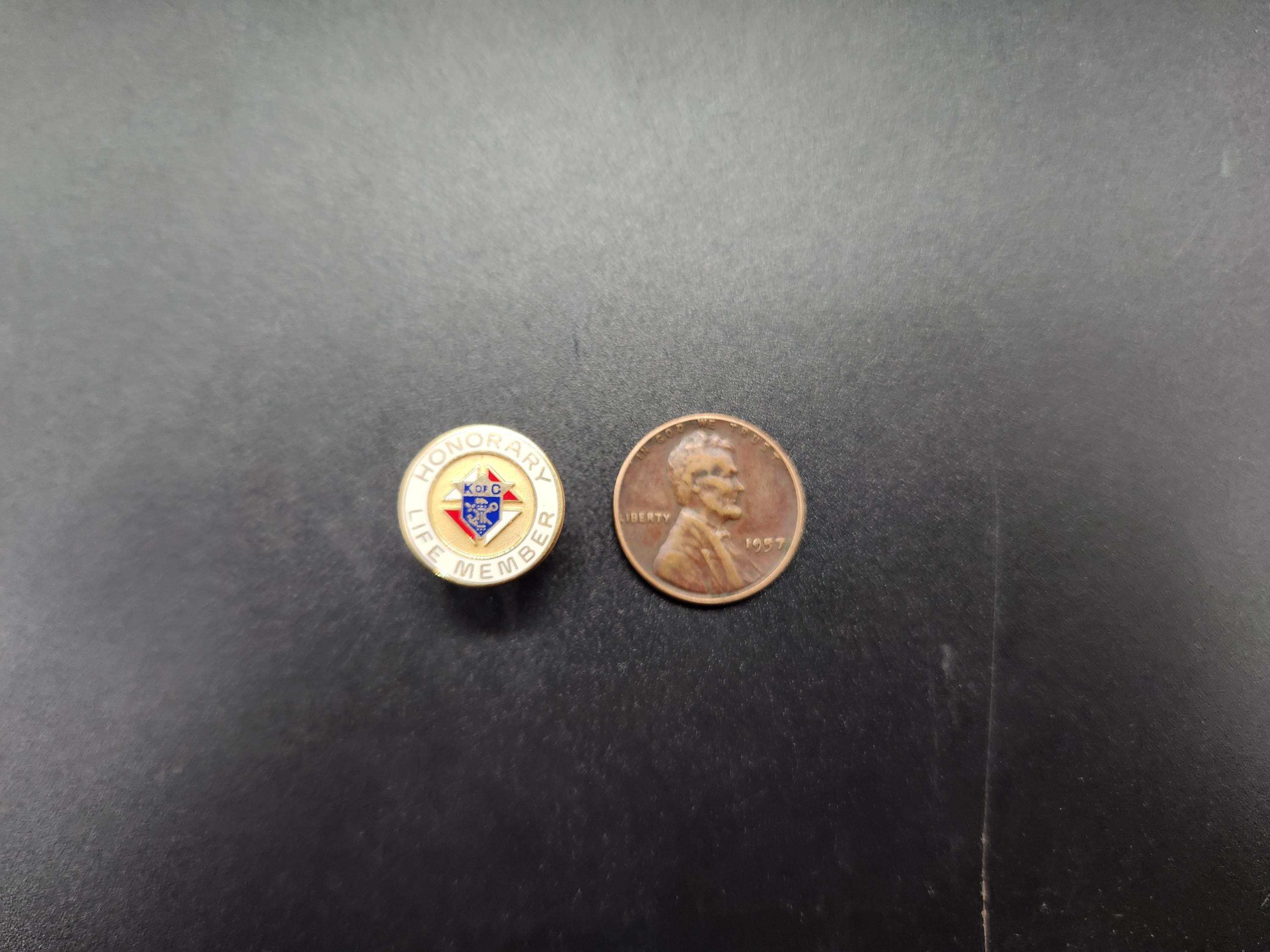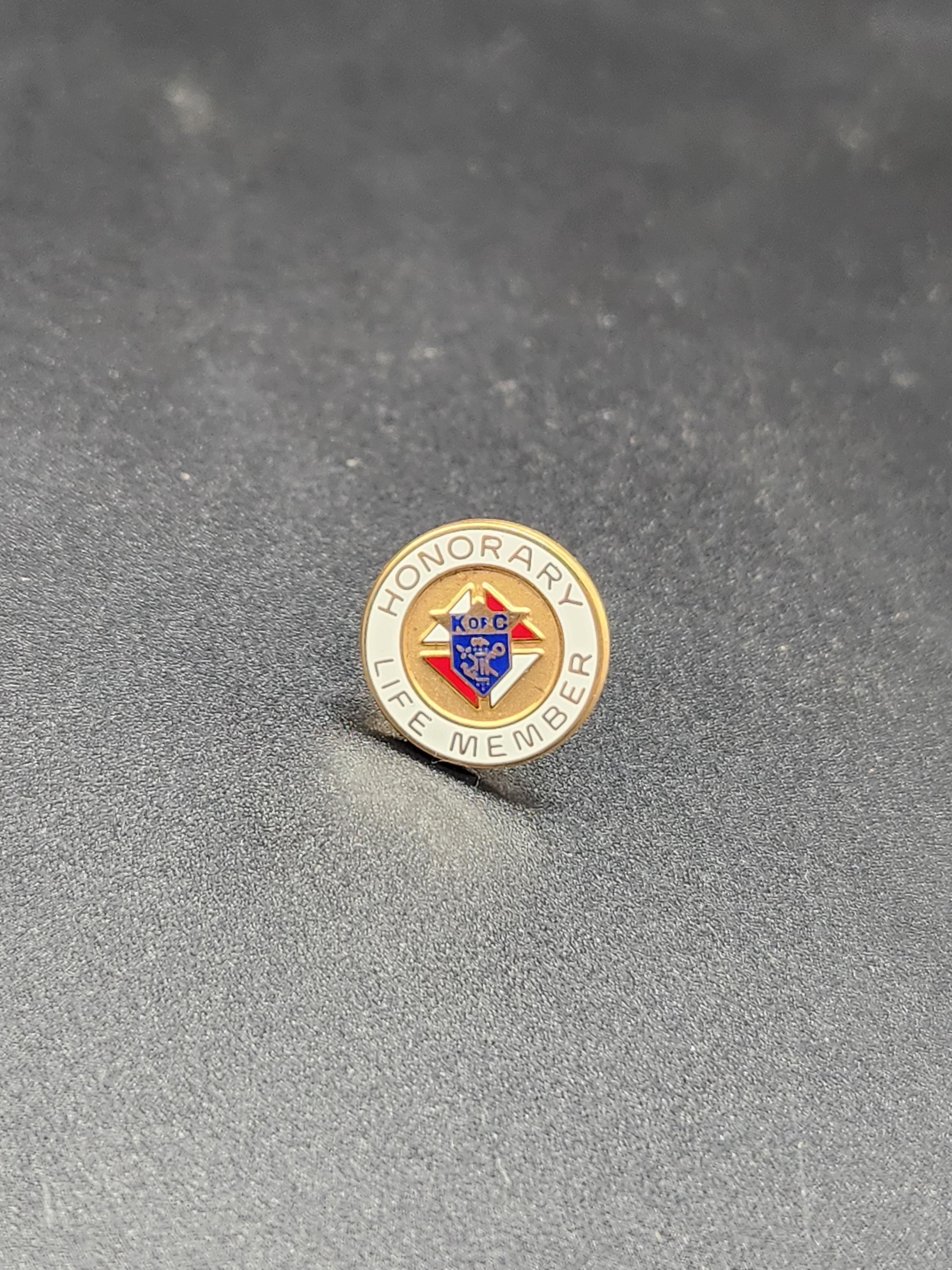 1/10 10K GF K of C Life Member Knights of Columbus Honorary Life Member Lapel Pin or Tie Tack, Marked 1/10 10K Gold Filled