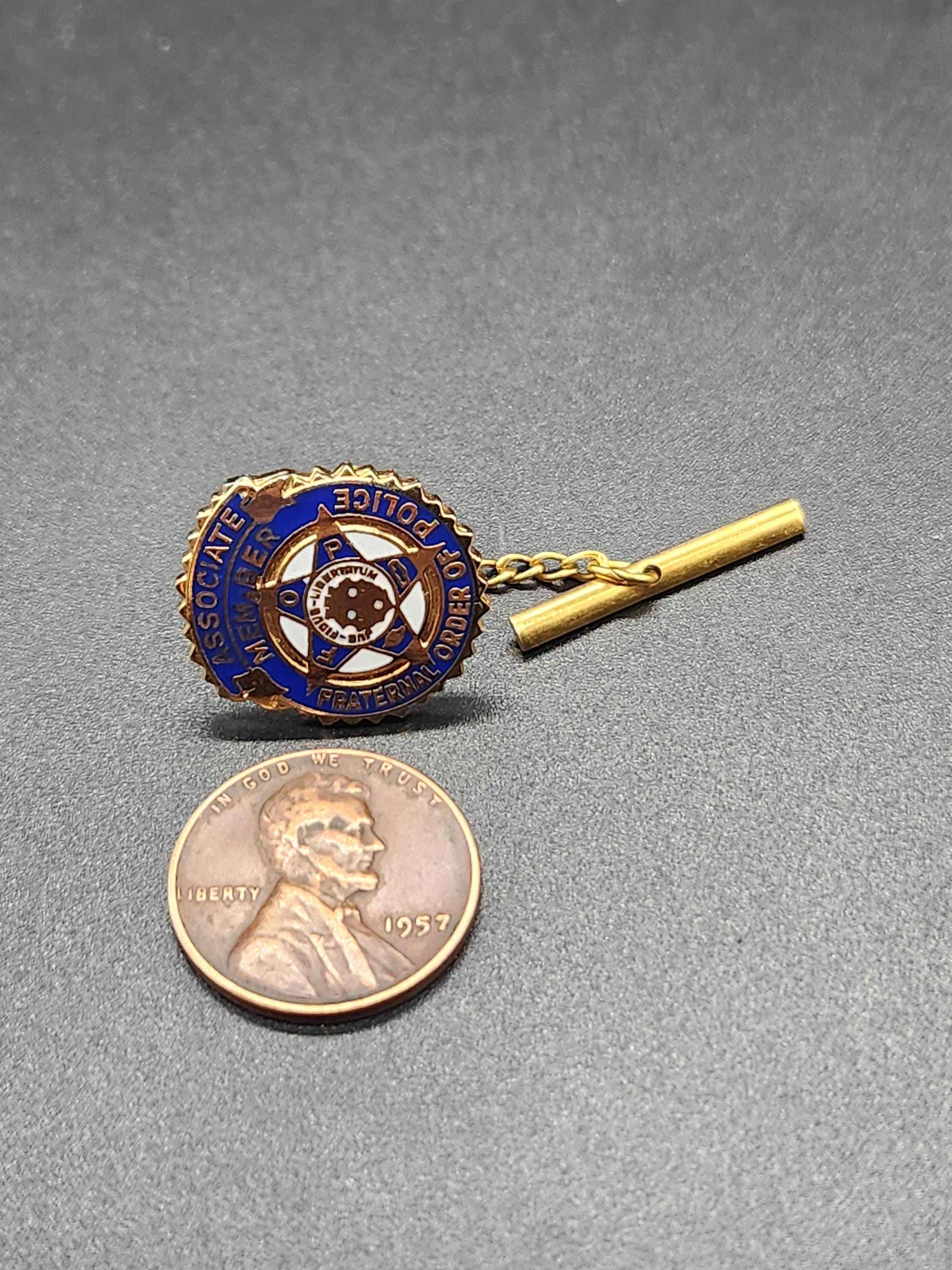 Associate Member Fraternal Order of Police Goldtone Tie Tack Lapel Pin, Vintage FOP Member Pin