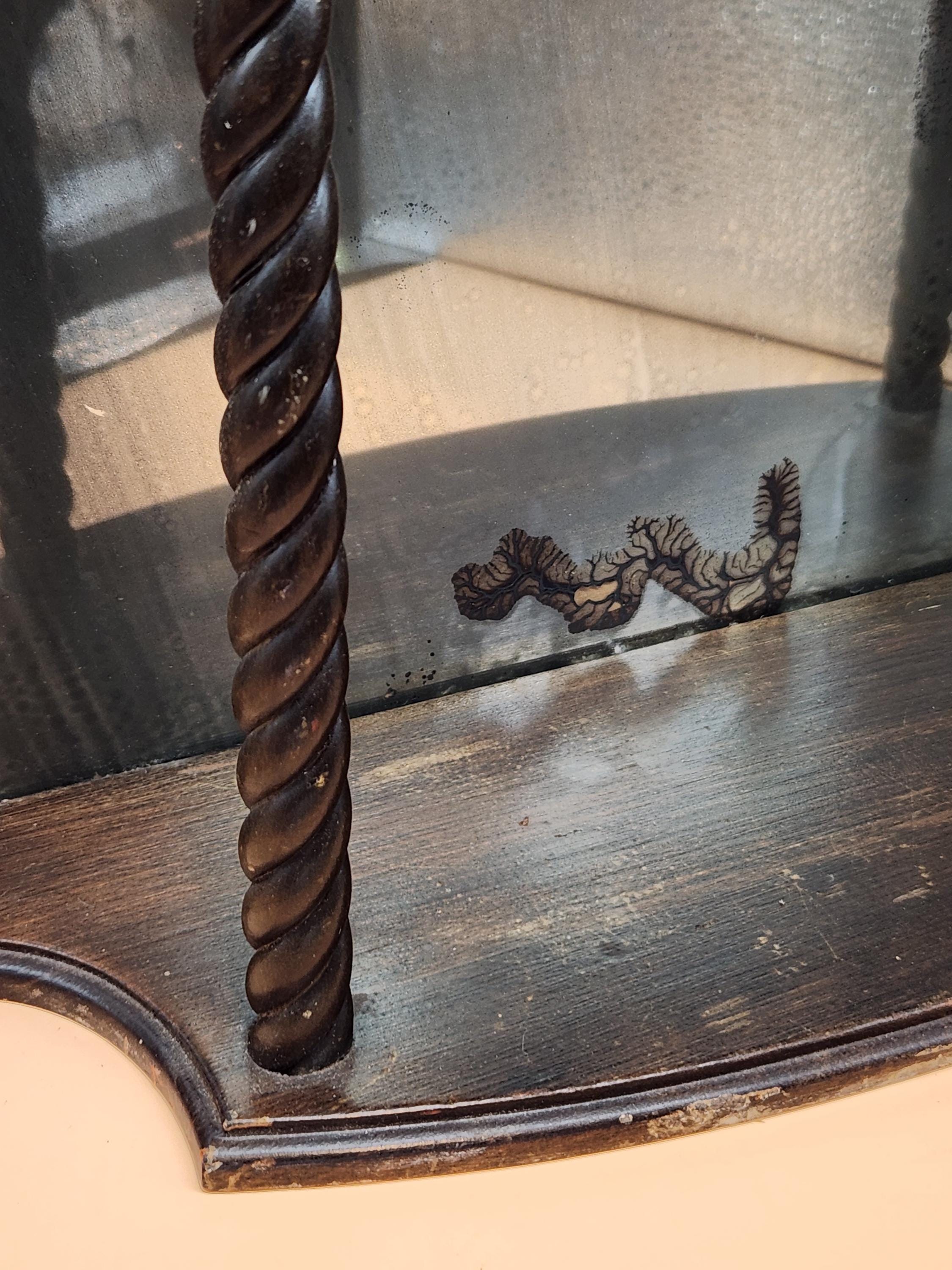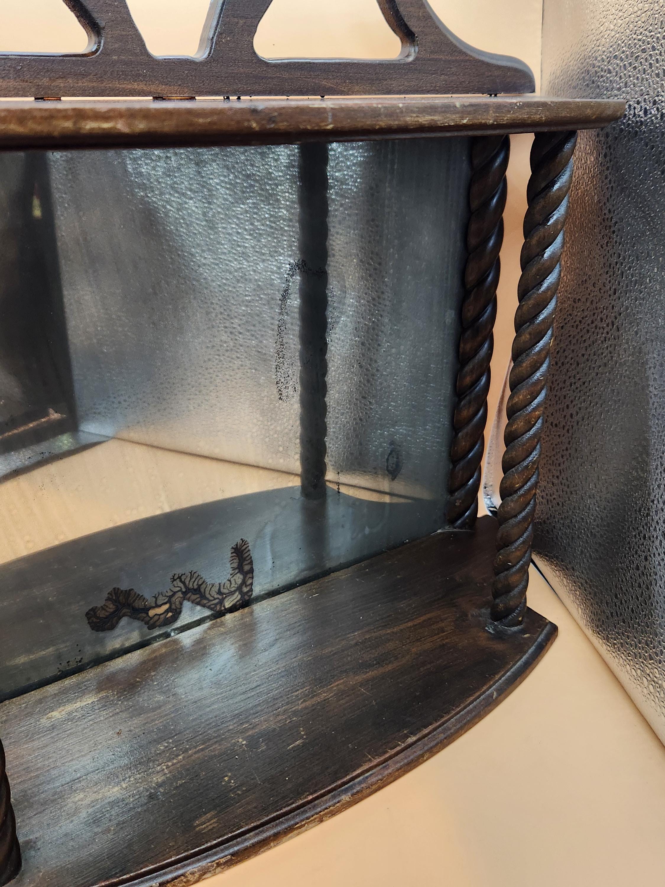 Antique Mirrored Knick Knack Display Shelf, Early 1900s Arts and Crafts Construction, Mirror has spooky appearance with silver corrosion. 17"x14"x5"