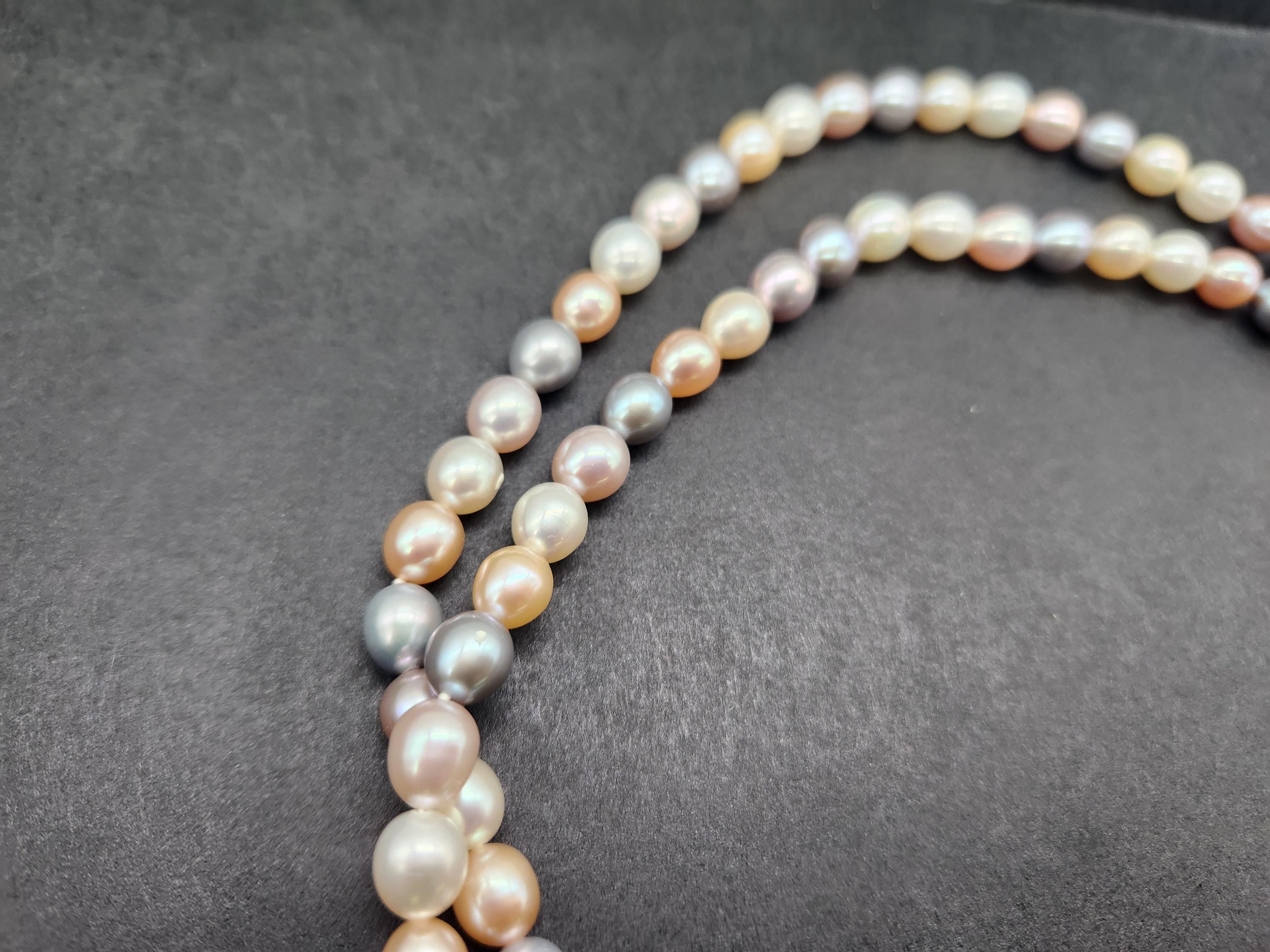 36" Cultured Freshwater Pearl Endless Necklace Tri-Color 8.5mm Pearls, Excellent Condition, Real Freshwater Cultured Pearls