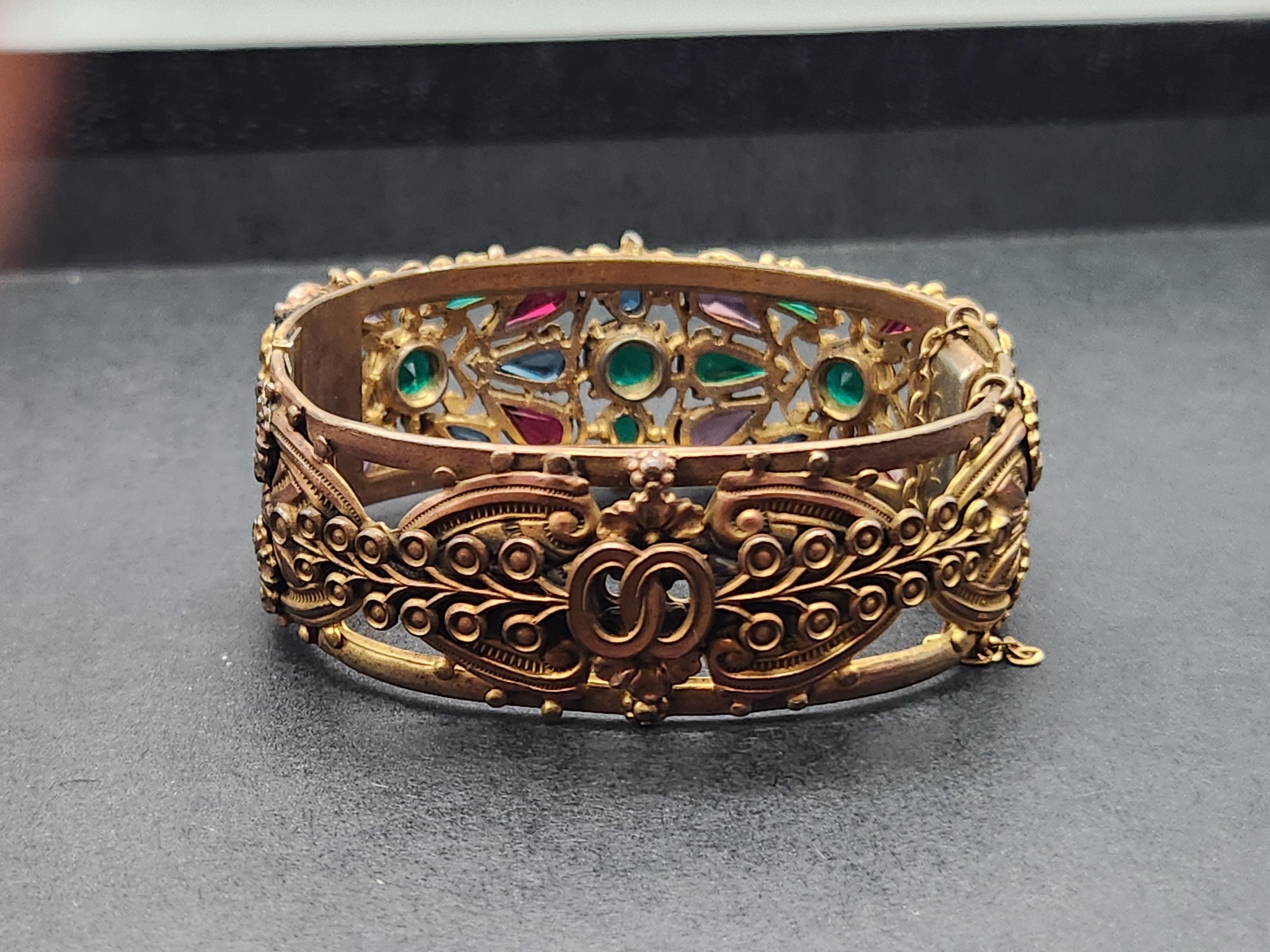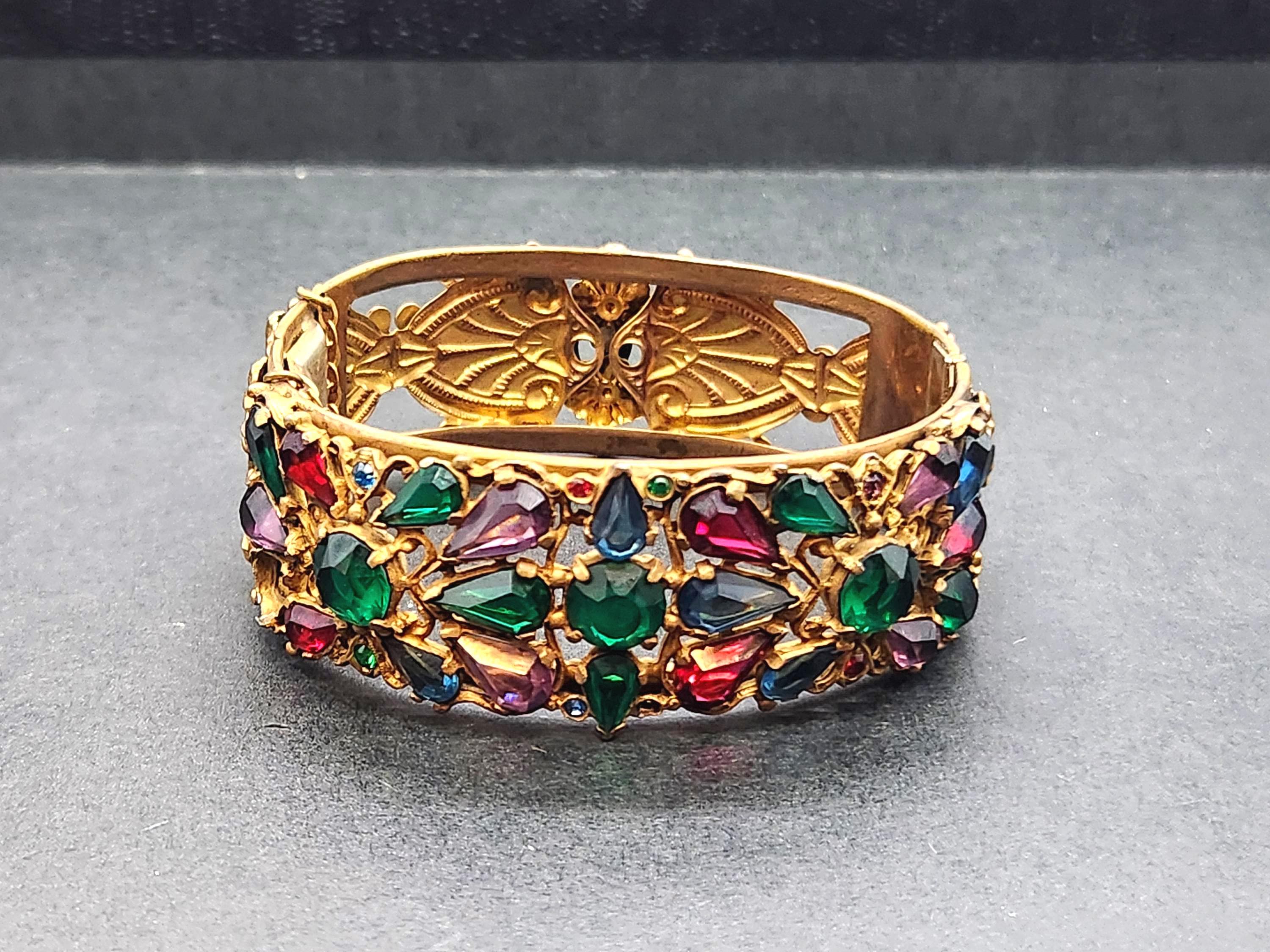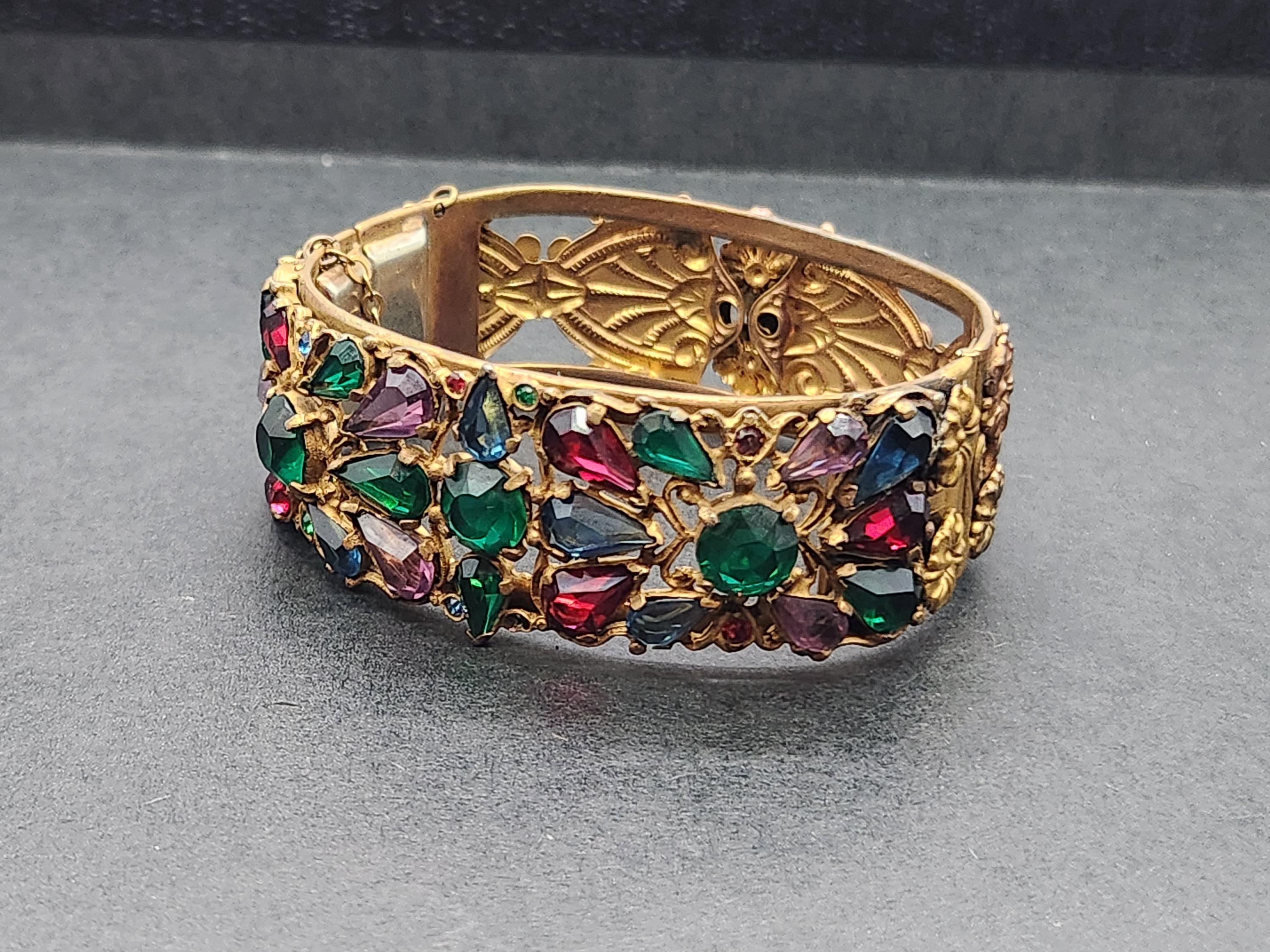 Perfect for the vintage jewelry collector, a lover of Art Nouveau aesthetics, or anyone seeking a unique statement piece with a rich past. It makes an unforgettable gift for anniversaries, birthdays, or as a special treat for yourself. Embrace the charm and sophistication of a bygone era with this magnificent Czech rhinestone bangle.