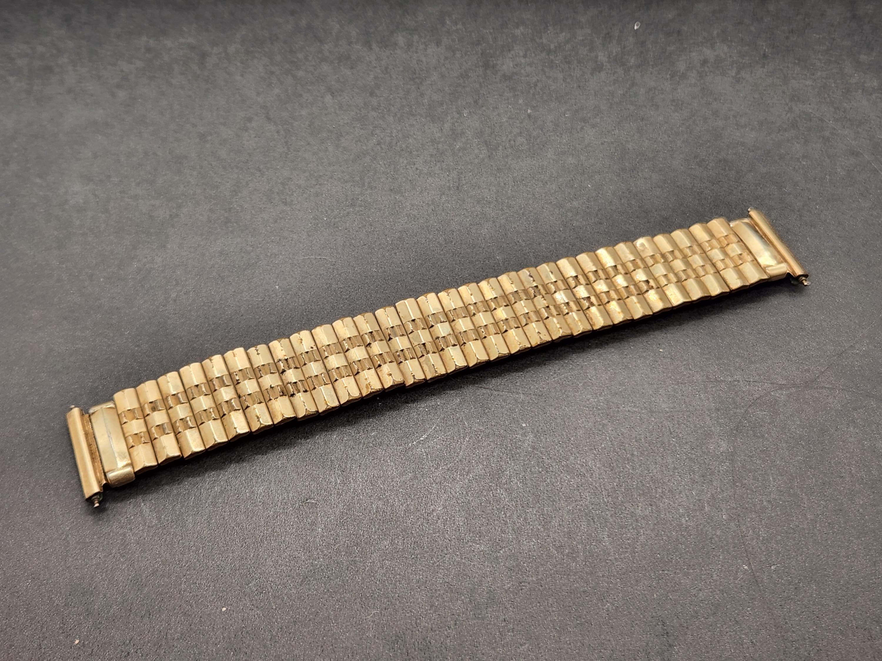 1950s Vintage Eton Men's 10K Gold Filled Expandable Watch Band 5.5" Unexpanded Stainless Bottom 1/20 10K GF Decorative Top Caps