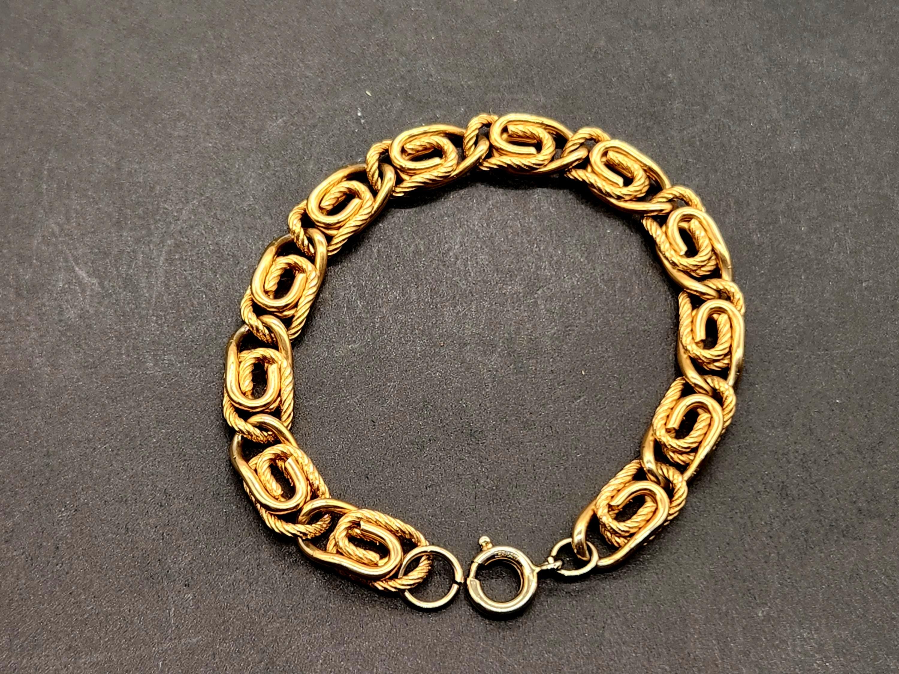 Vintage Marked Germany Chunky Gold Tone Heavy Scroll Chain Bracelet Twisted Oval Link 7.5" Length Excellent condition for its age est. 1980s