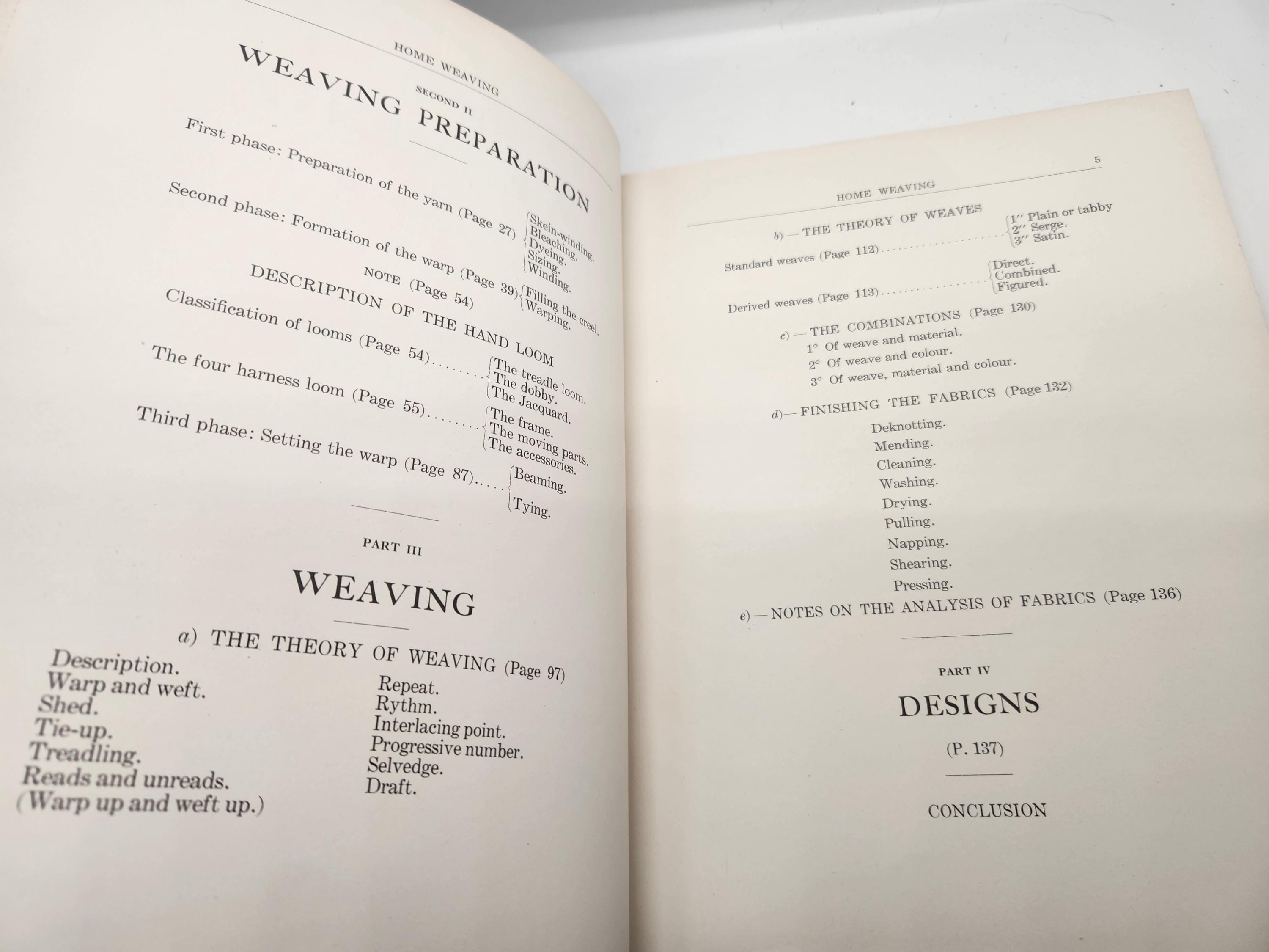 1939 Printing of the First Edition of this rare but classic tome of home weaving. Binding is solid and square, good used condition for its age.