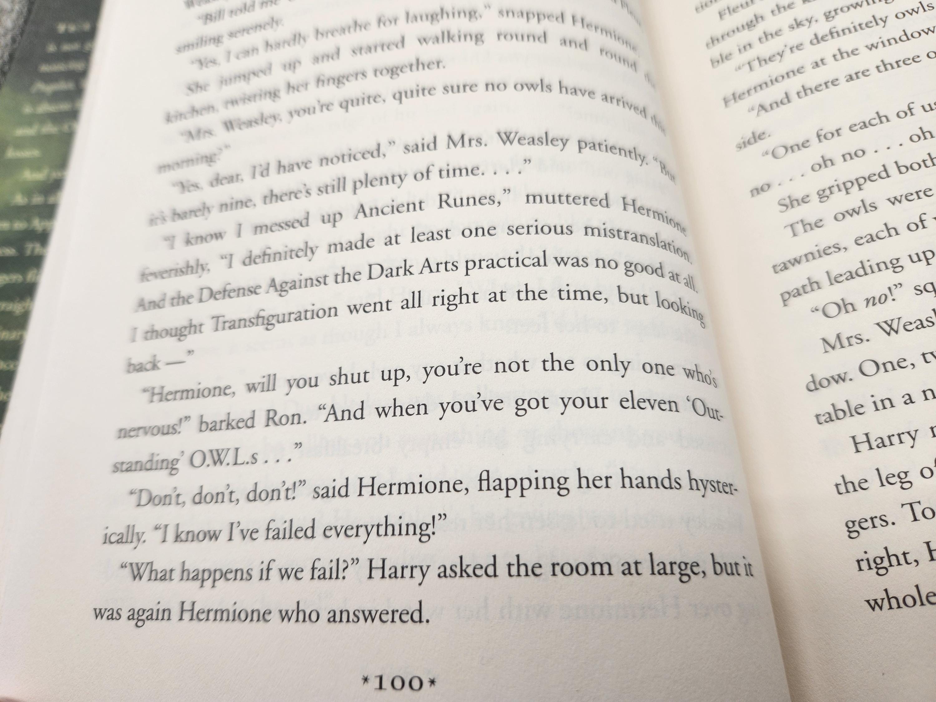 2005 Scholastic First American Edition, First Printing w/ page 99/100 "11 owls" error, full number line. DJ and book are in overall acceptable to good condition, the first 50 pages have a small hole/indentation through them, as shown in the pictures. DJ and book otherwise very clean.