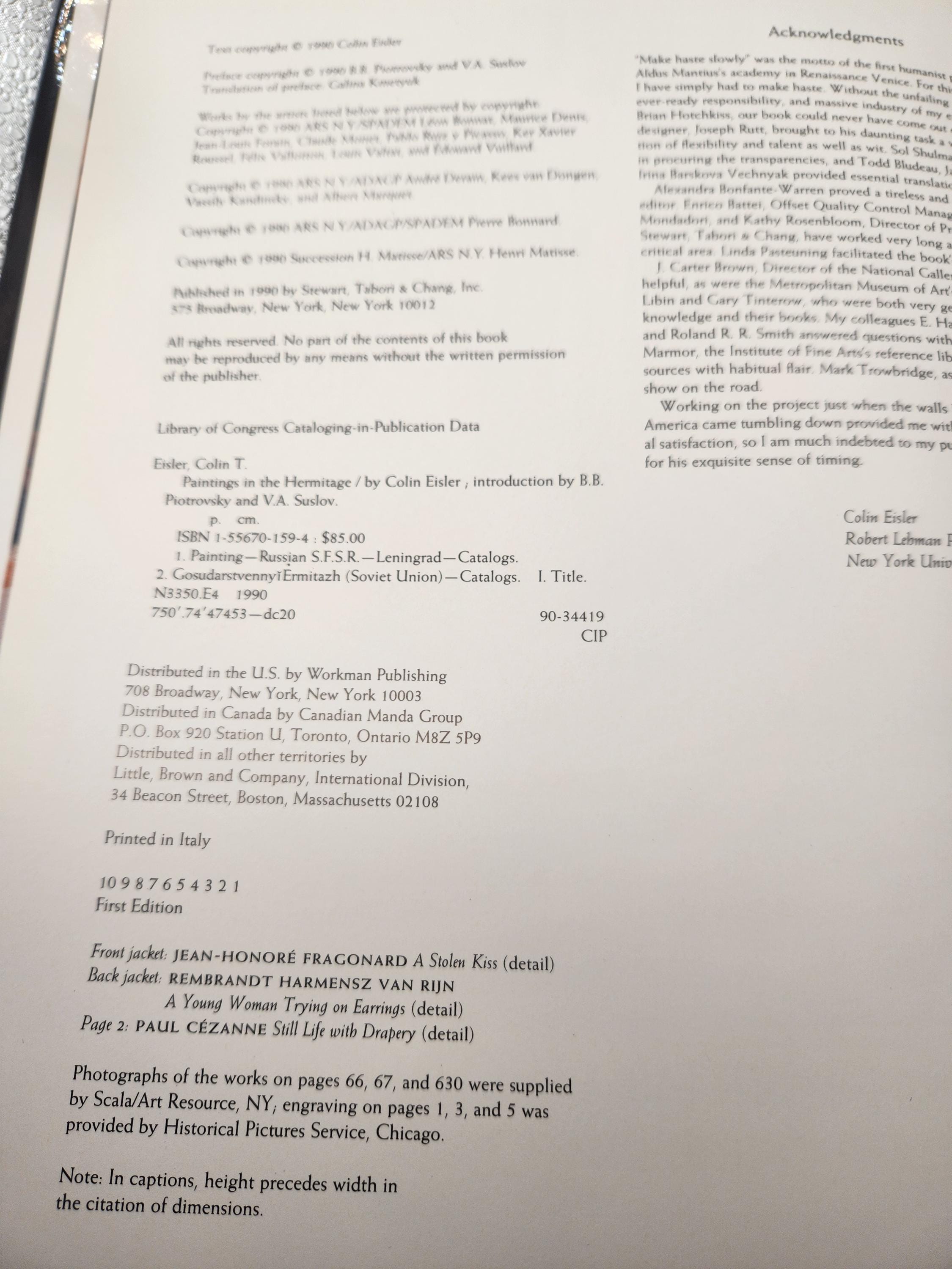Paintings in the Hermitage Art Reference Book by Colin Eisler, 1990 Stewart, Tabori & Chang