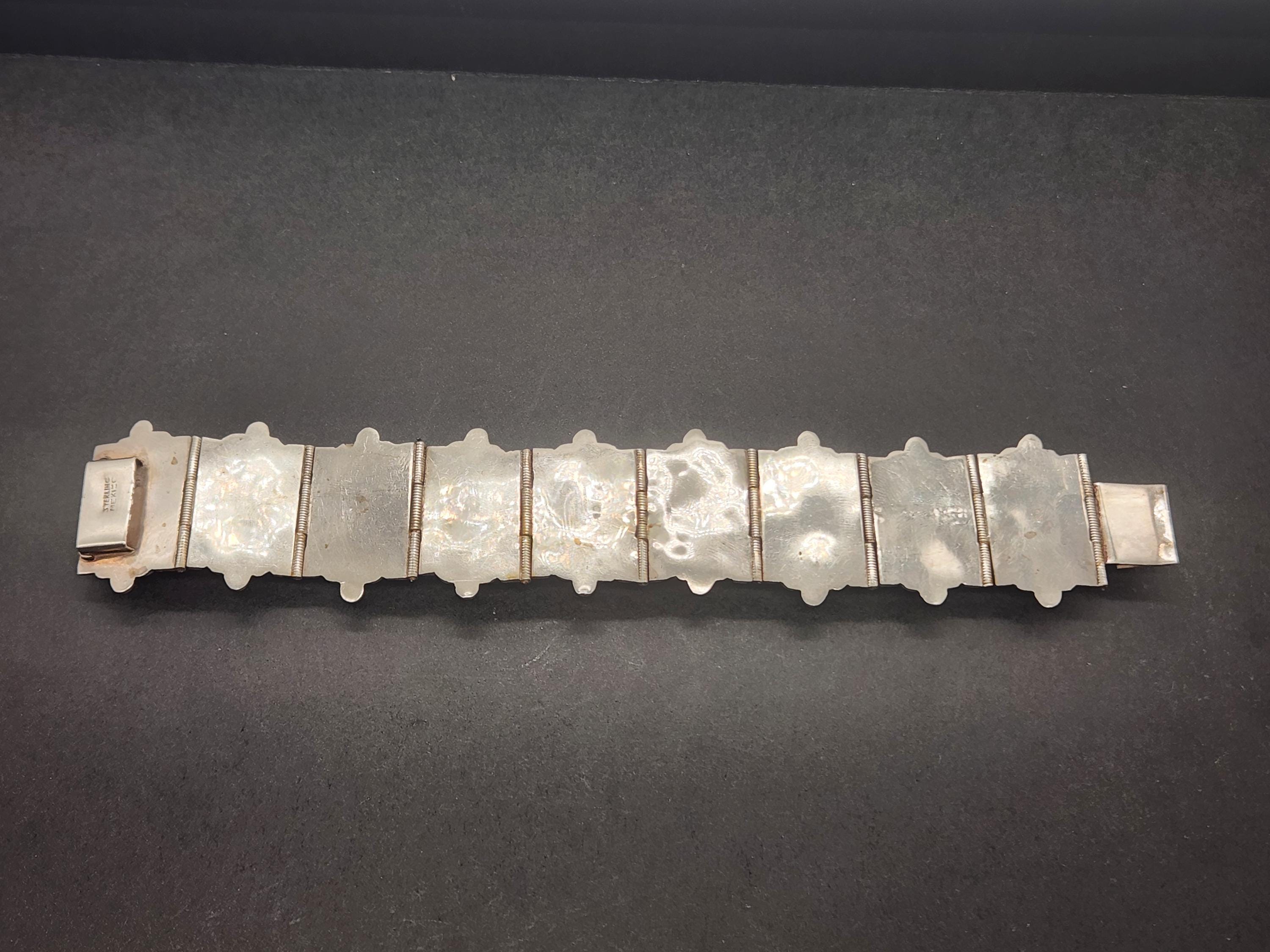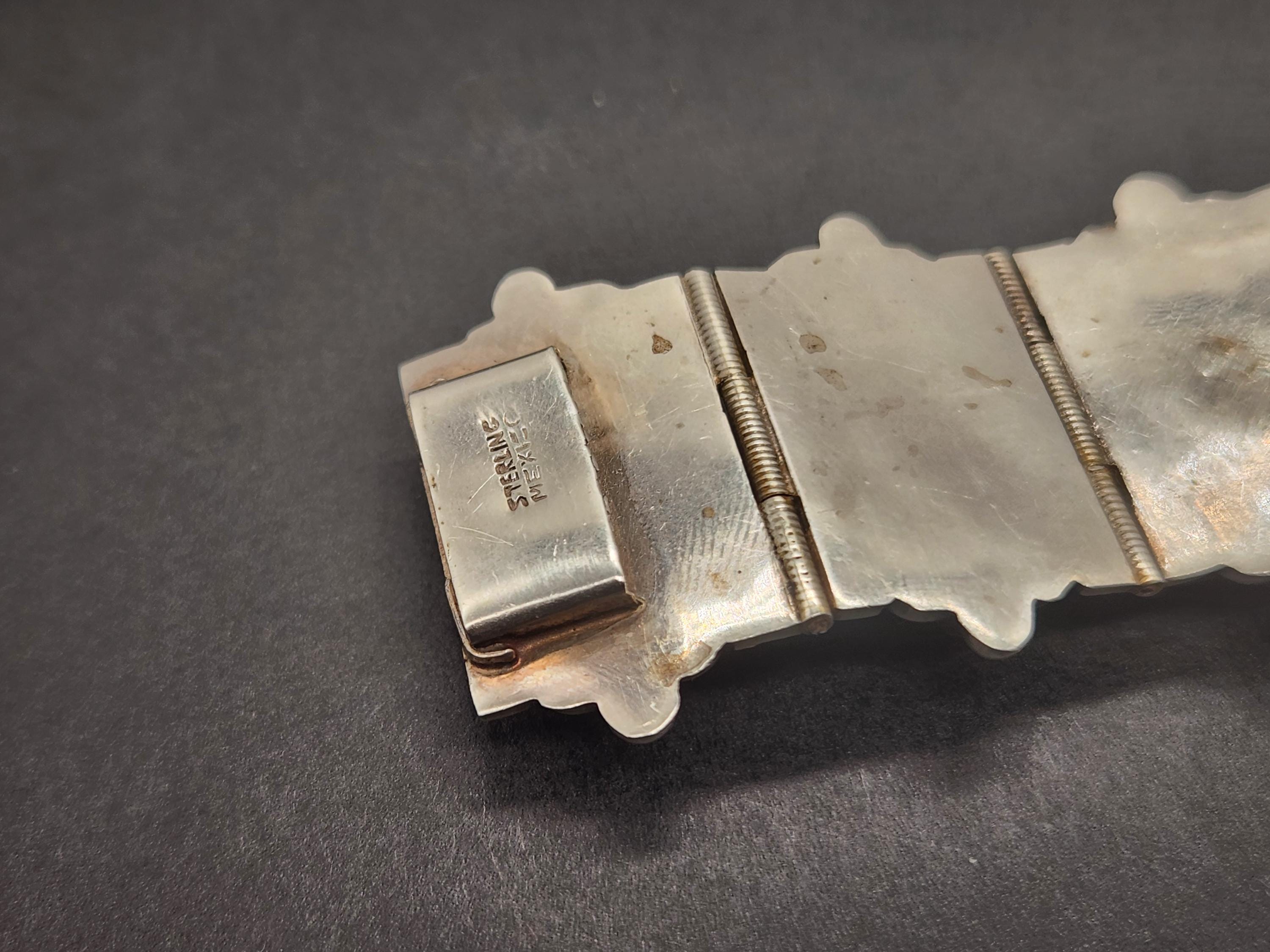 Crafted with exceptional quality, this bracelet is clearly marked "Mexico Sterling," assuring its authenticity and fine silver content. With a comfortable 7-inch length, it's designed to drape beautifully and securely. The substantial weight of 60.91 grams speaks to its premium construction and enduring value, making it more than just jewelry, it's a wearable piece of history. Imagine this bracelet adorning your wrist, adding a touch of vintage glamour to any outfit, or becoming the focal point of your jewelry collection.