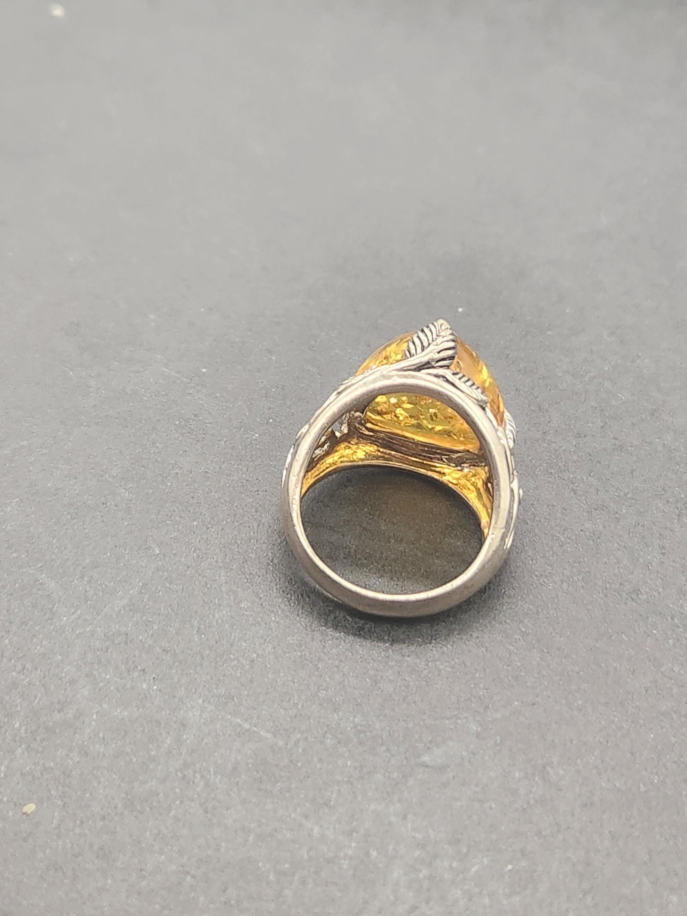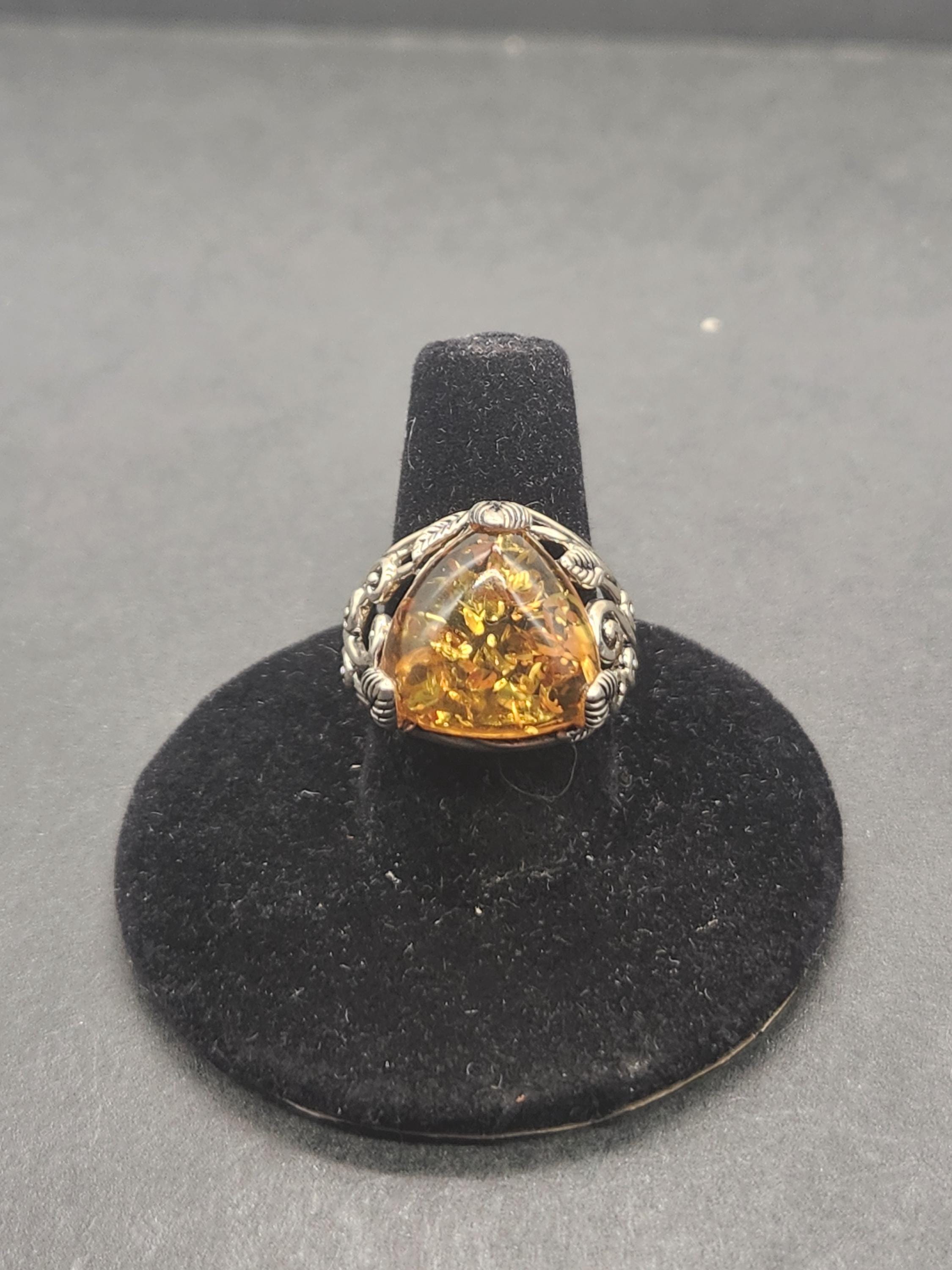 Weighing a substantial 6.5 grams, this cocktail ring feels luxurious and well-made on the finger. It is currently available in a US Size 6, perfect for those seeking a bold yet refined accessory. The rich, warm hues of the Baltic Amber are known for their natural beauty and unique inclusions, making each ring truly one-of-a-kind. Whether you're dressing up for a special occasion or adding a touch of vintage-inspired charm to your everyday look, this ring is sure to draw compliments and spark conversation.