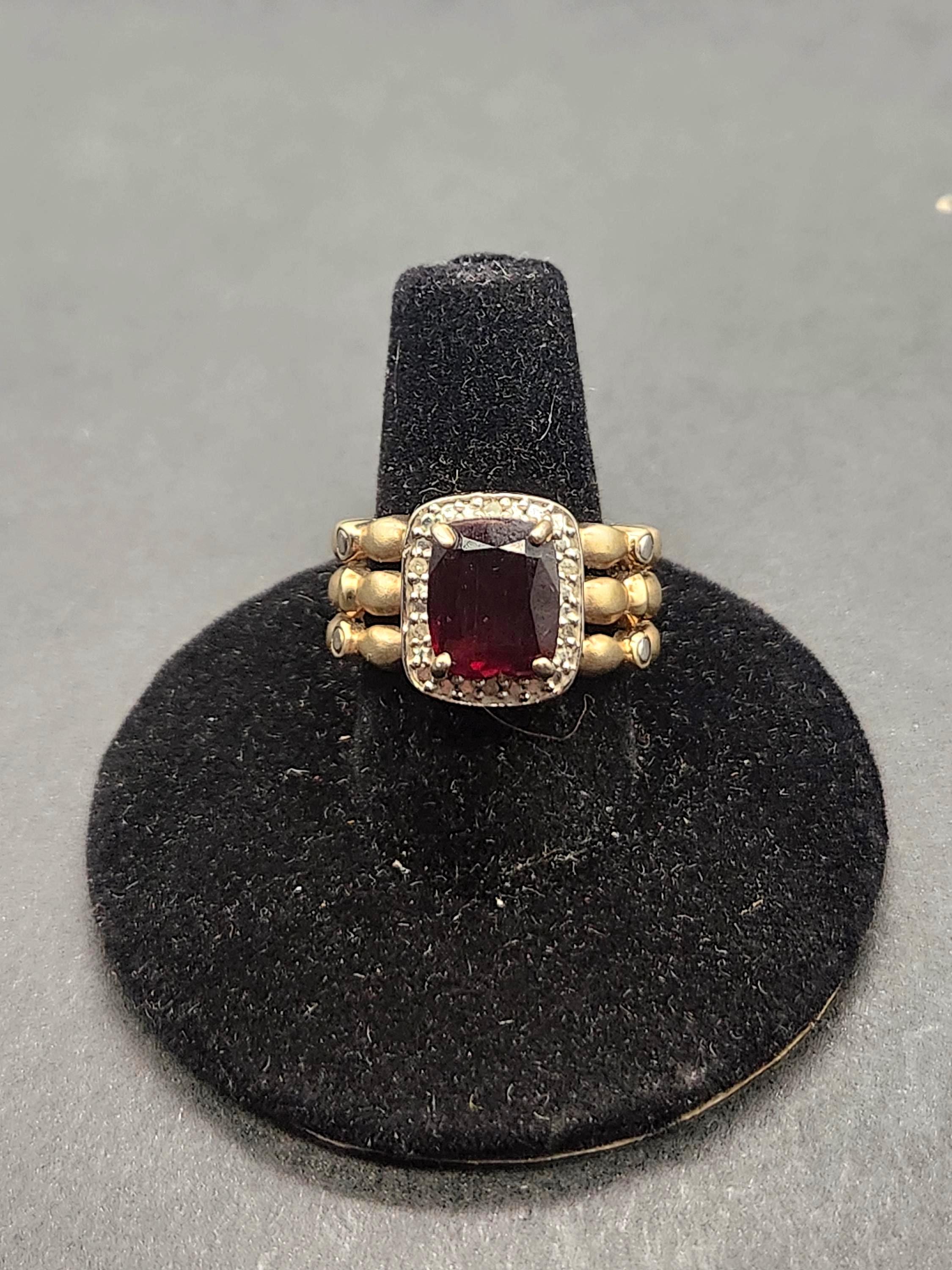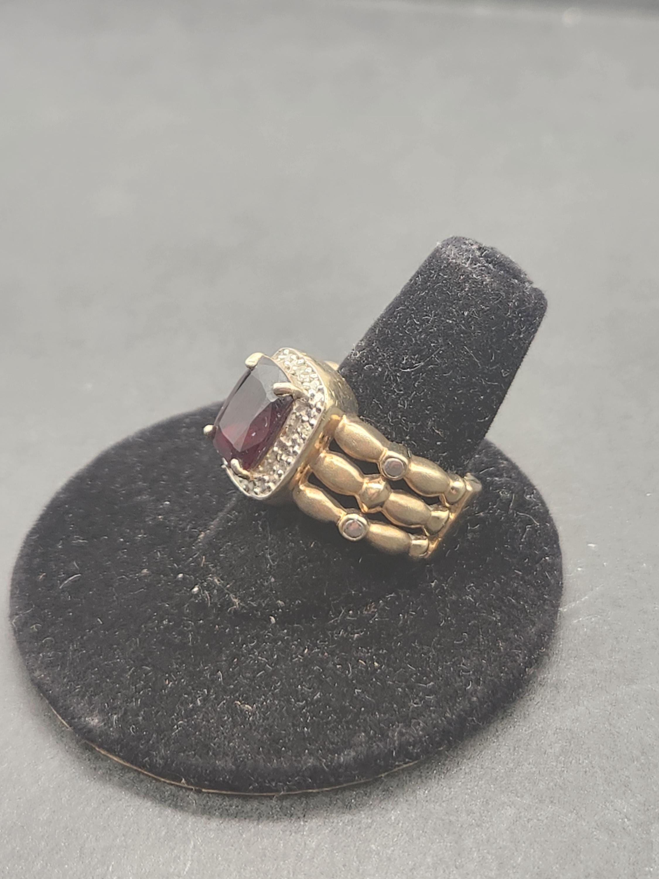 Whether you're celebrating an anniversary, a birthday, or simply treating yourself to something extraordinary, this rhodolite garnet and diamond halo ring makes an unforgettable gift. Its classic design and vibrant gemstone make it a cherished addition to any jewelry collection. Embrace the allure of deep red and brilliant sparkle , a piece designed to be admired and treasured for years to come.