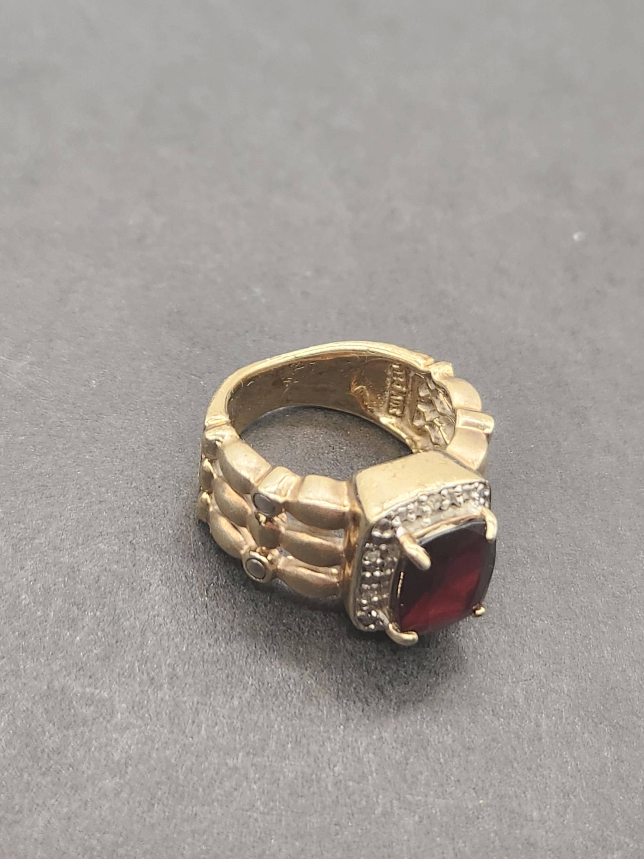 Crafted with meticulous attention to detail, the ring features a high-quality gold plating over a solid 925 sterling silver setting, ensuring both durability and a luxurious finish. This piece is clearly marked '925 ADI THAI,' confirming its sterling silver purity and origin. Currently available in a versatile Size 6, it's perfect for everyday wear or special occasions.