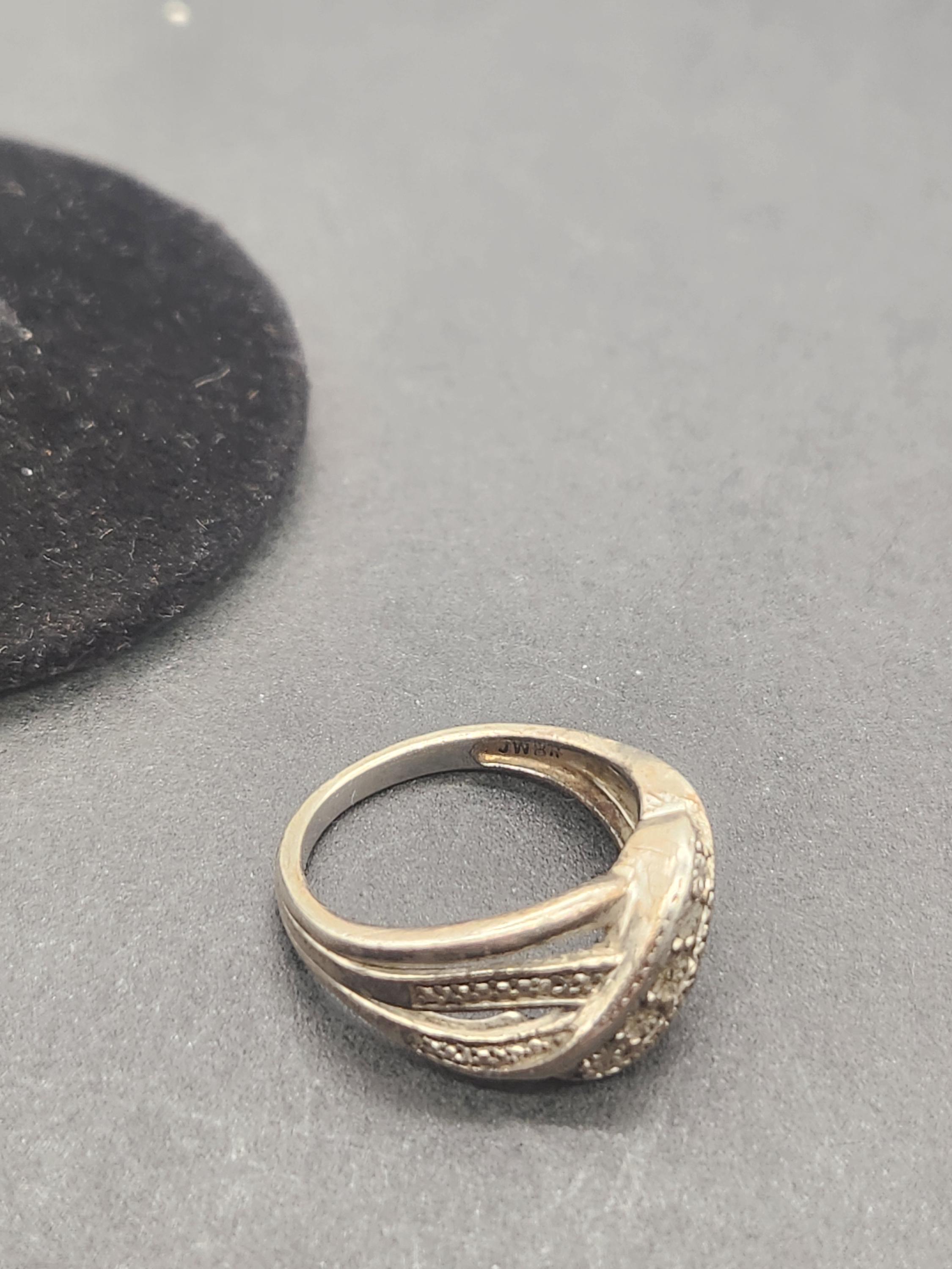 Celebrate eternal love and elegant style with this captivating Sterling Silver Crossover Infinity Ring. Expertly crafted in genuine sterling silver, this exquisite piece features a graceful crossover design that symbolizes an unbreakable bond and endless connection. Each curve is delicately adorned with brilliant diamond chips, adding a subtle sparkle and luxurious touch that catches the light beautifully. This stunning ring, from the renowned JWBR collection, is a perfect size 6.5, offering a comfortable and secure fit.