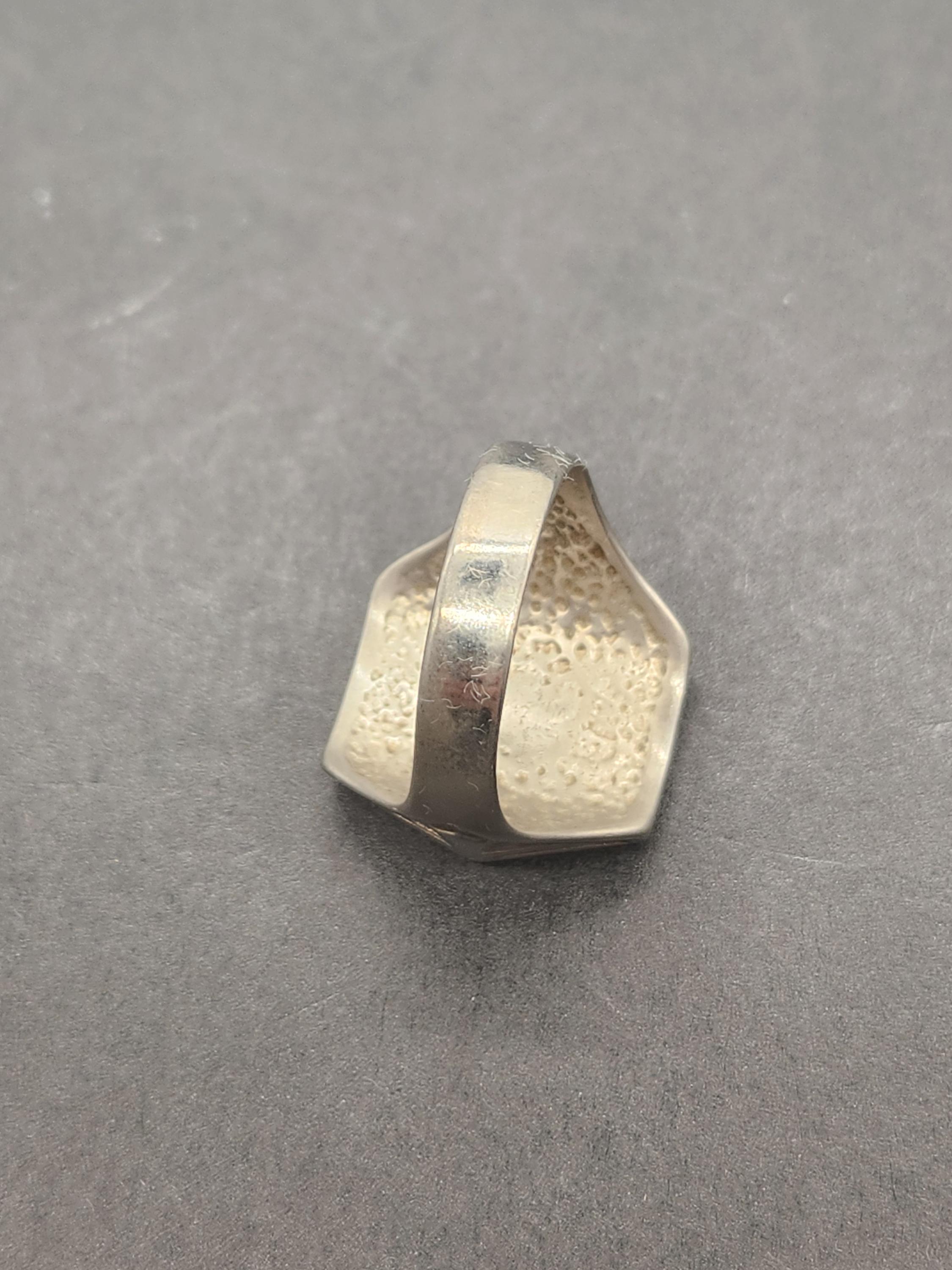 Fashioned from gleaming sterling silver, this substantial ring weighs 10 grams, offering a comfortable yet noticeable presence on the hand. Its bold design and rich history make it a perfect statement piece for those who appreciate unique, handcrafted jewelry with a story. This ring is a men's size 11.5, making it an ideal fit for a discerning collector or someone looking to add a touch of authentic vintage flair to their wardrobe.