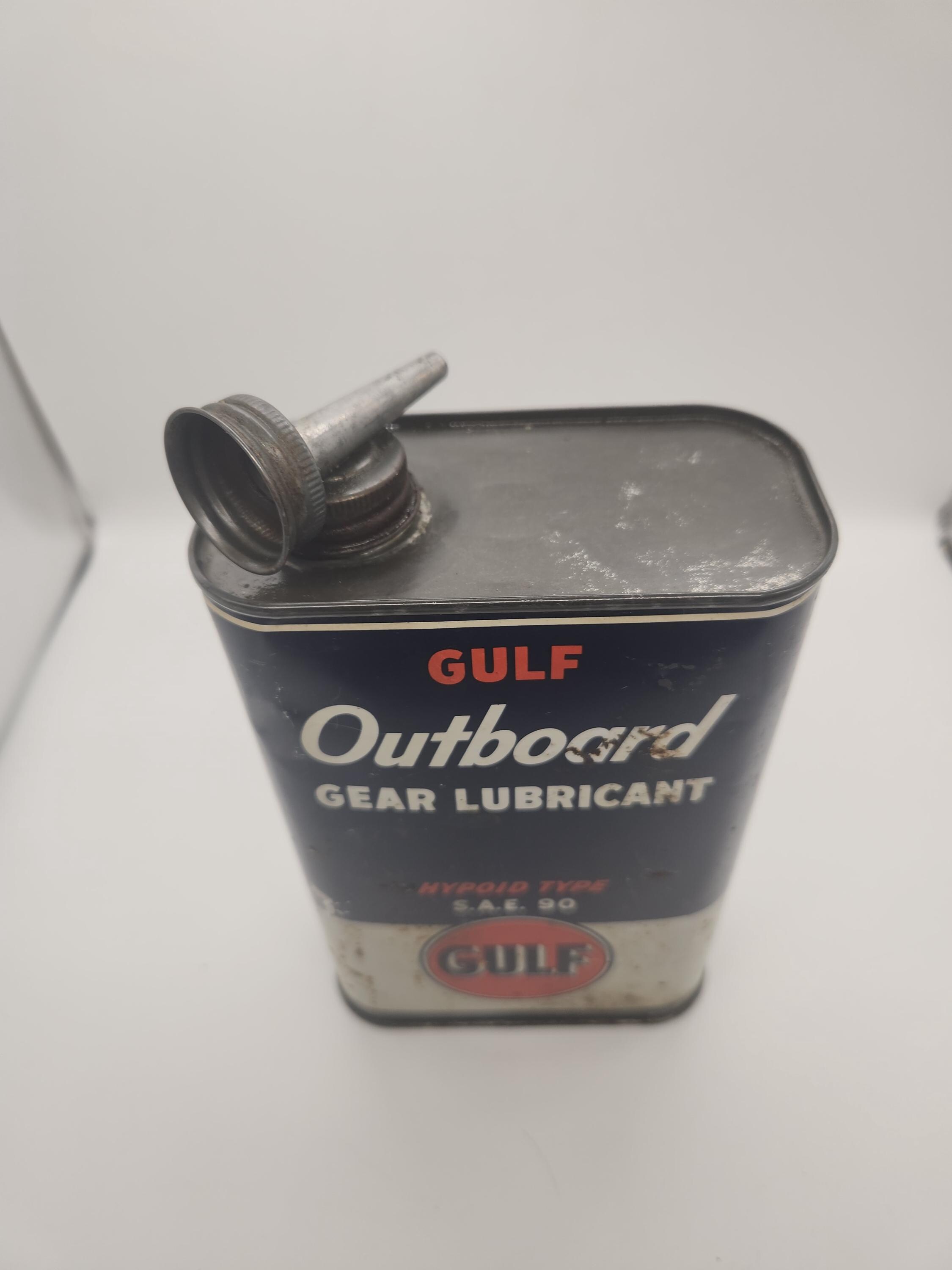 Step back in time with this authentic piece of automotive history: a vintage GULF Outboard Gear Lubricant S.A.E 90 Hypoid Type Used 1 Qt Can. This isn't just an empty can; it's a vibrant relic of bygone eras, featuring eye-catching vintage advertising for Gulf, a name synonymous with American industry and adventure.