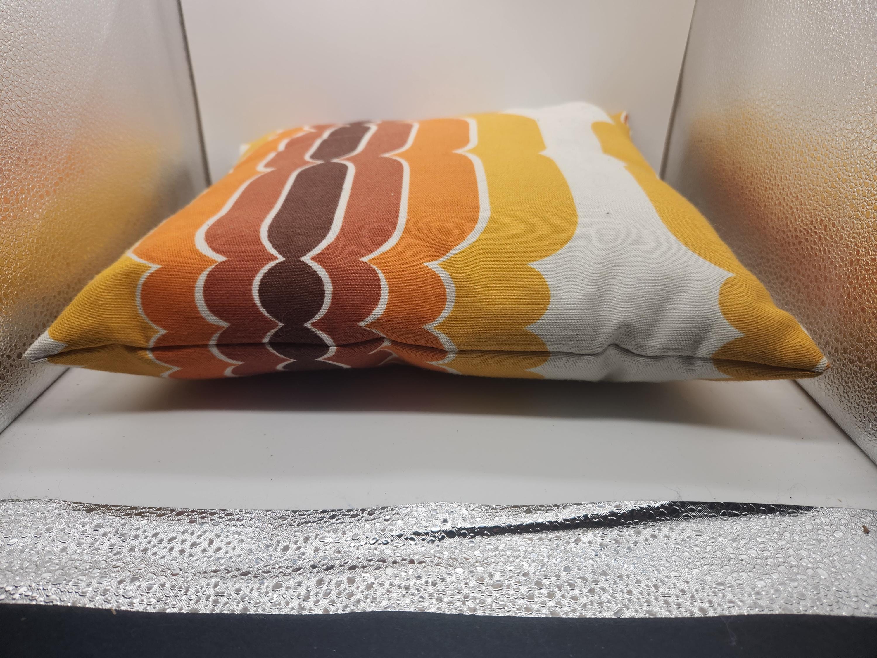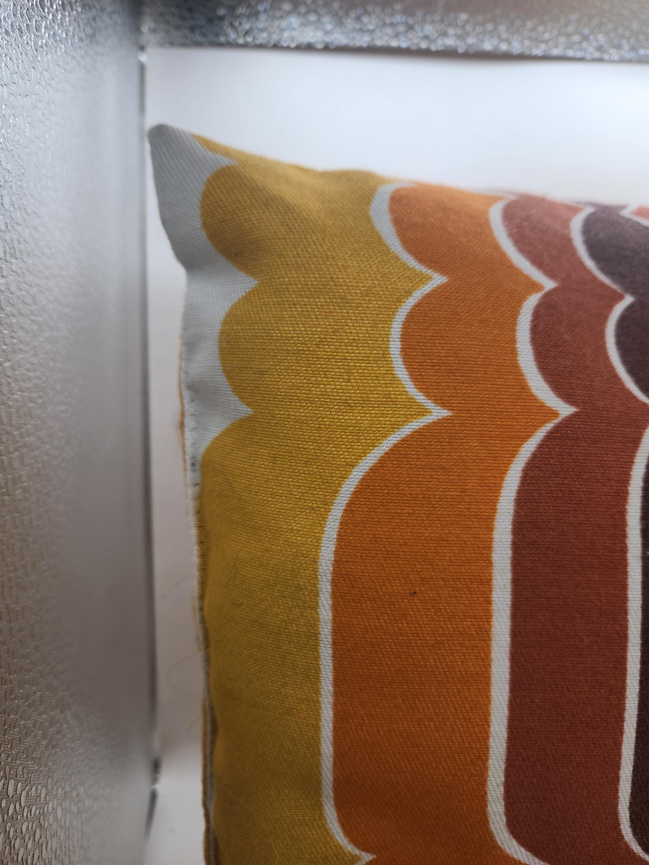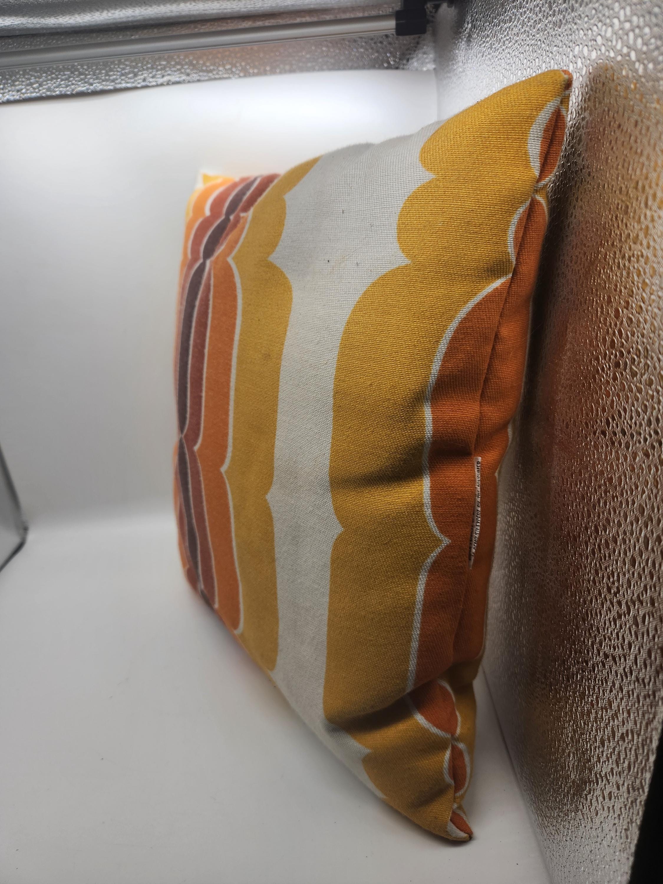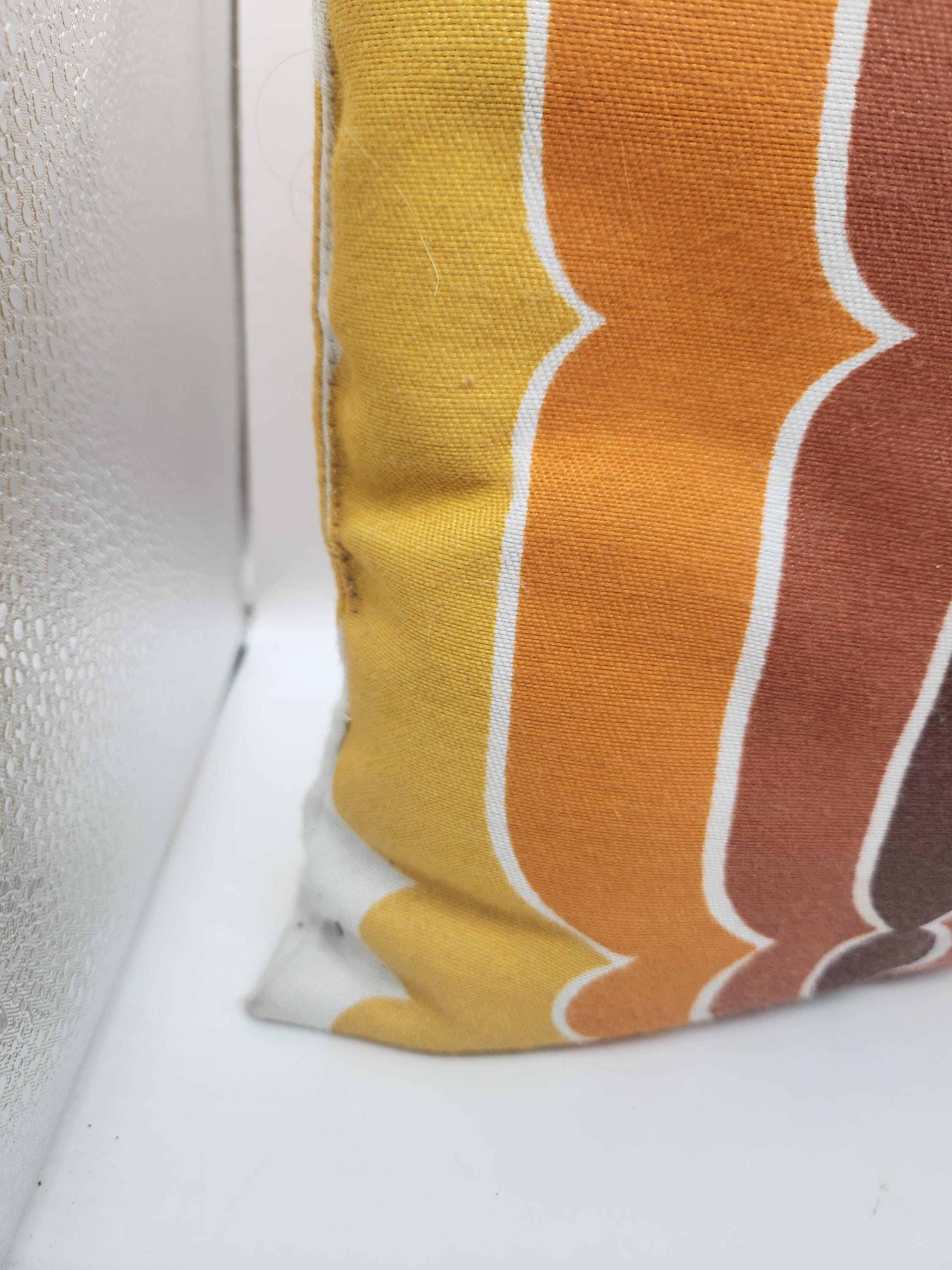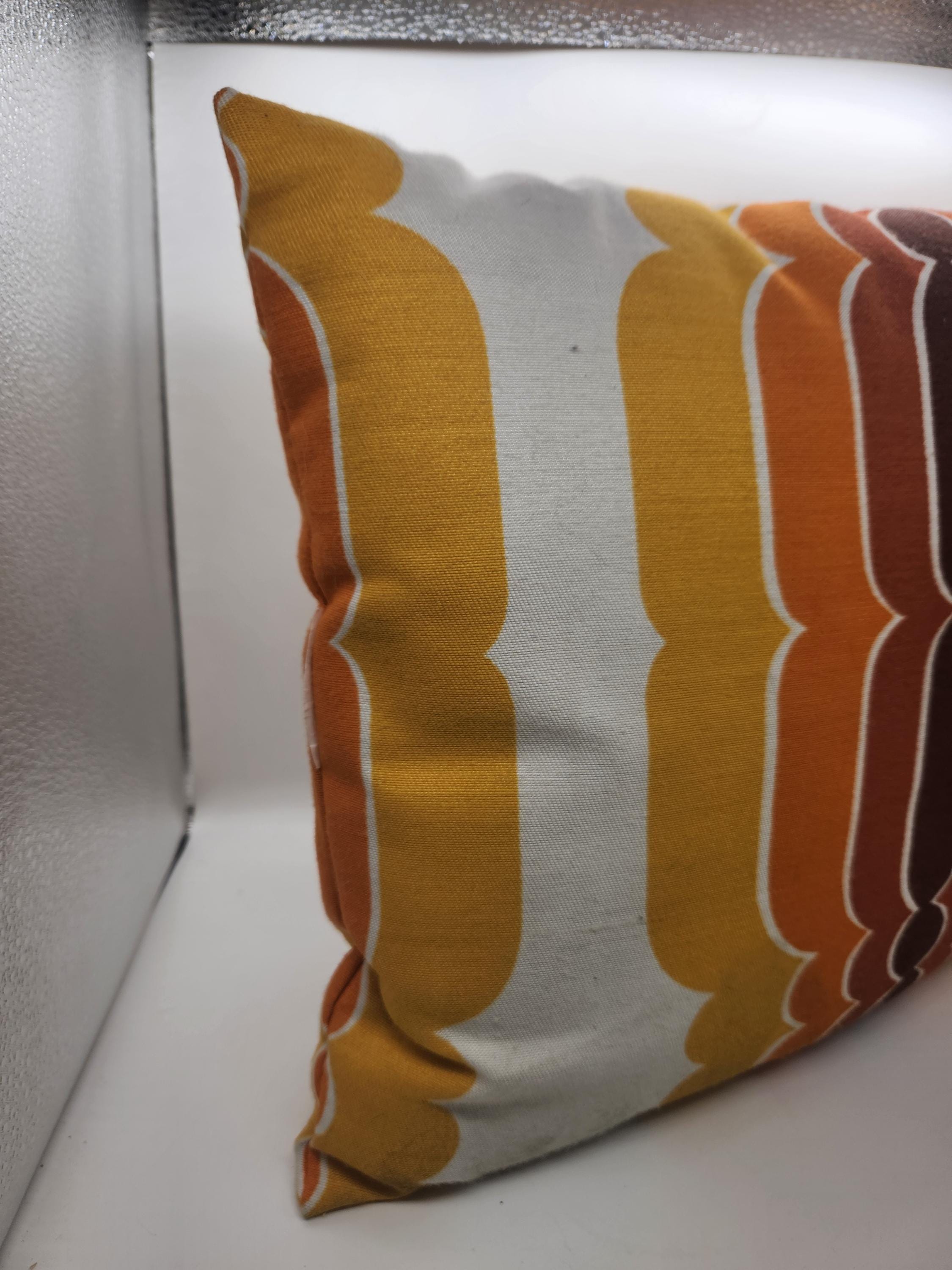 We currently have one other matching pillow listed with a slightly different complementary pattern; seize the opportunity to acquire the pair while they're both available to create a cohesive and stunning display. Perfect for collectors of vintage design, enthusiasts of Verner Panton, or anyone looking to infuse their living space with authentic 1970s flair and a touch of dopamine decor. This unique piece also makes an unforgettable gift for a lover of mid-century design or a housewarming present with unique character.