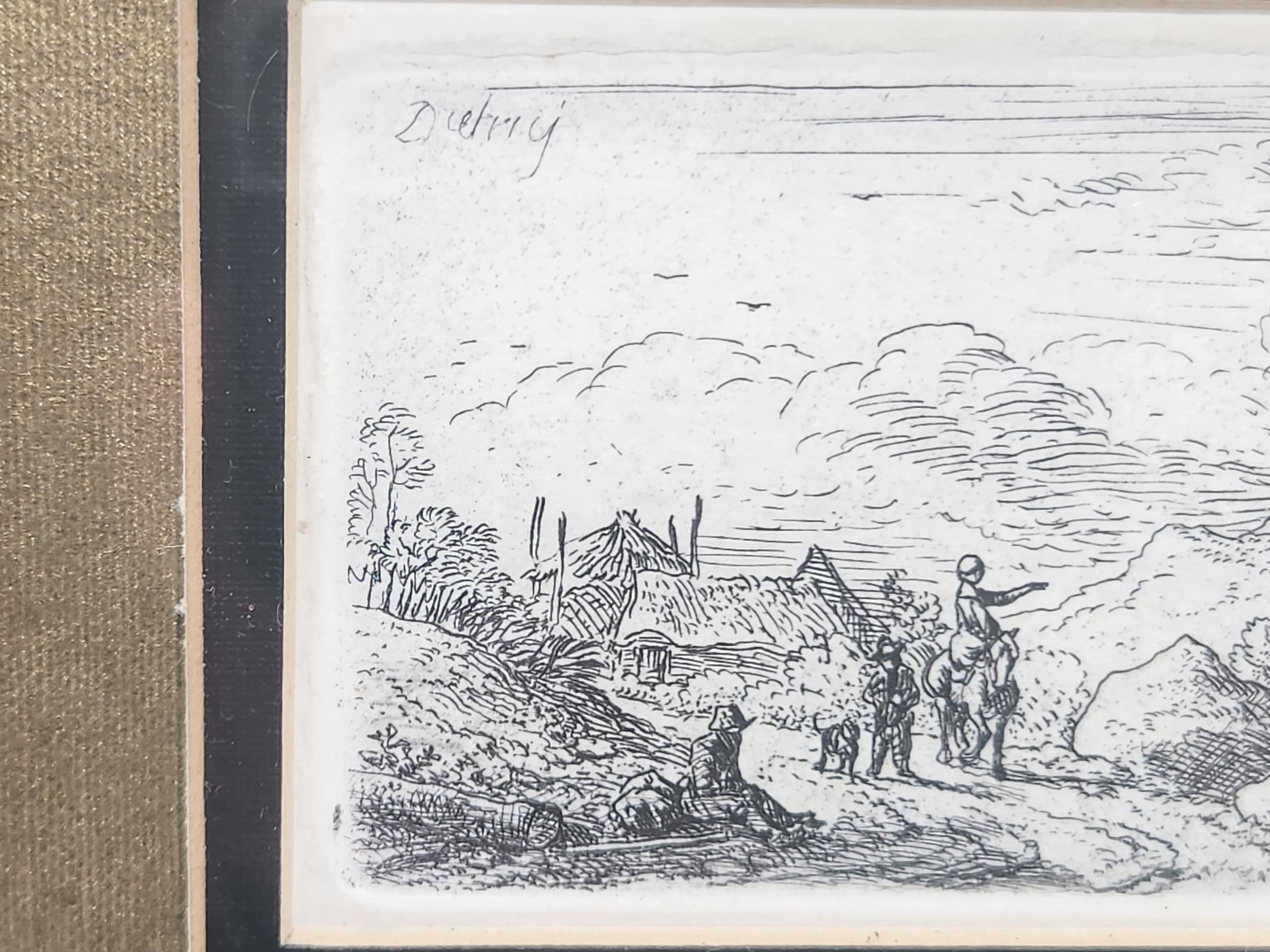 Step back in time with this exquisite original etching by the renowned Christian Wilhelm Ernst Dietrich (Dietricy, 1712-1774). This captivating piece, dating from the mid-1700s, depicts a serene Mountain Village scene, a testament to the artist's mastery of the 18th-century etching technique. The artwork is authentically signed in the plate by the artist himself, adding to its historical significance and collector's appeal. Although undated, its style and provenance firmly place it within the mid-1700s, offering a genuine slice of art history.