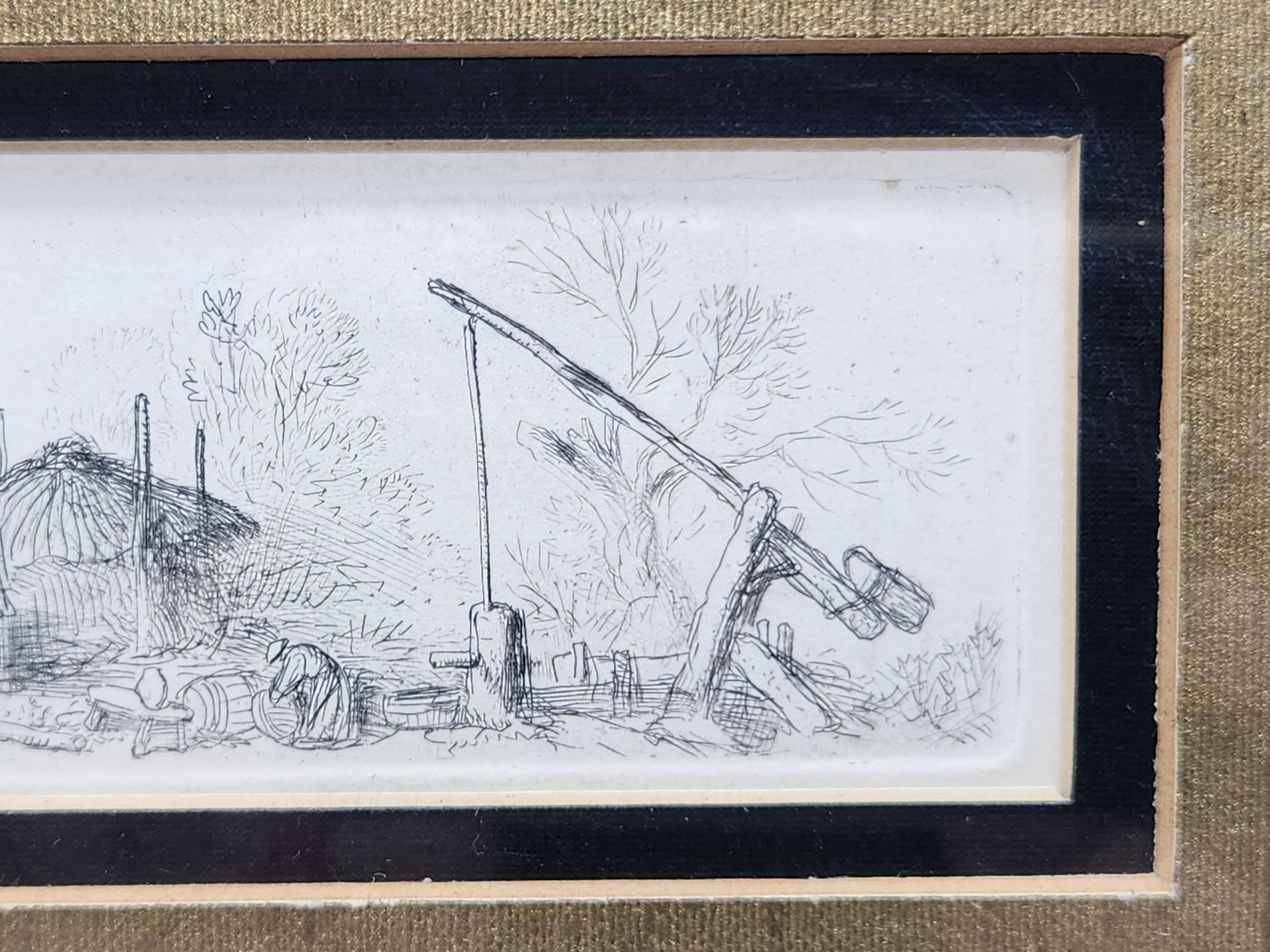 The etching itself measures approximately 5 inches wide by 2 inches tall, a delicate and detailed composition that draws the eye. It comes beautifully presented in a modern 12 inch by 10 inch frame, which perfectly complements and protects the vintage artwork while allowing it to seamlessly integrate into contemporary decor. This piece is not just an artwork; it's a conversation starter, a window into another era, and a sophisticated addition to any art collection.