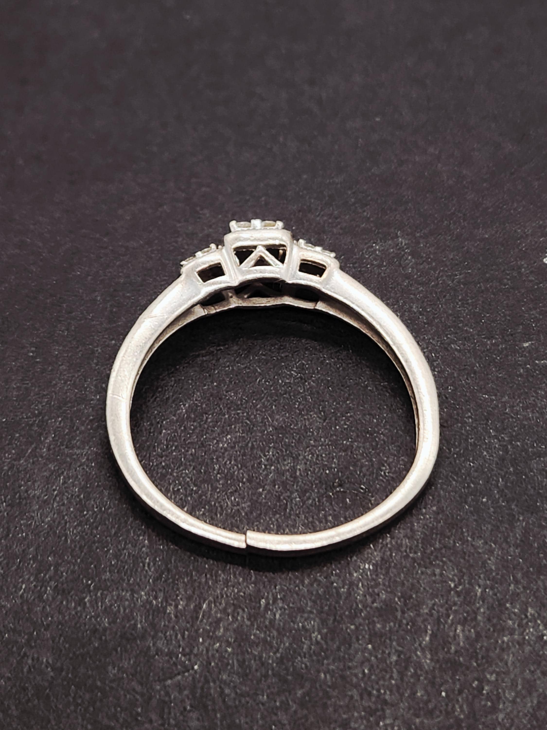 Designed as a stunning engagement or promise ring, this piece comes in a versatile size 8.5. We understand the importance of a perfect fit; therefore, the bottom of the ring is thoughtfully cut and ready for easy adjustment or soldering by your local jeweler. This ensures a seamless and comfortable fit, tailored just for you or your beloved. The price has been reduced slightly to reflect this. Whether you're marking a significant milestone, proposing, or simply expressing your affection, this ring offers both timeless beauty and practical adaptability.