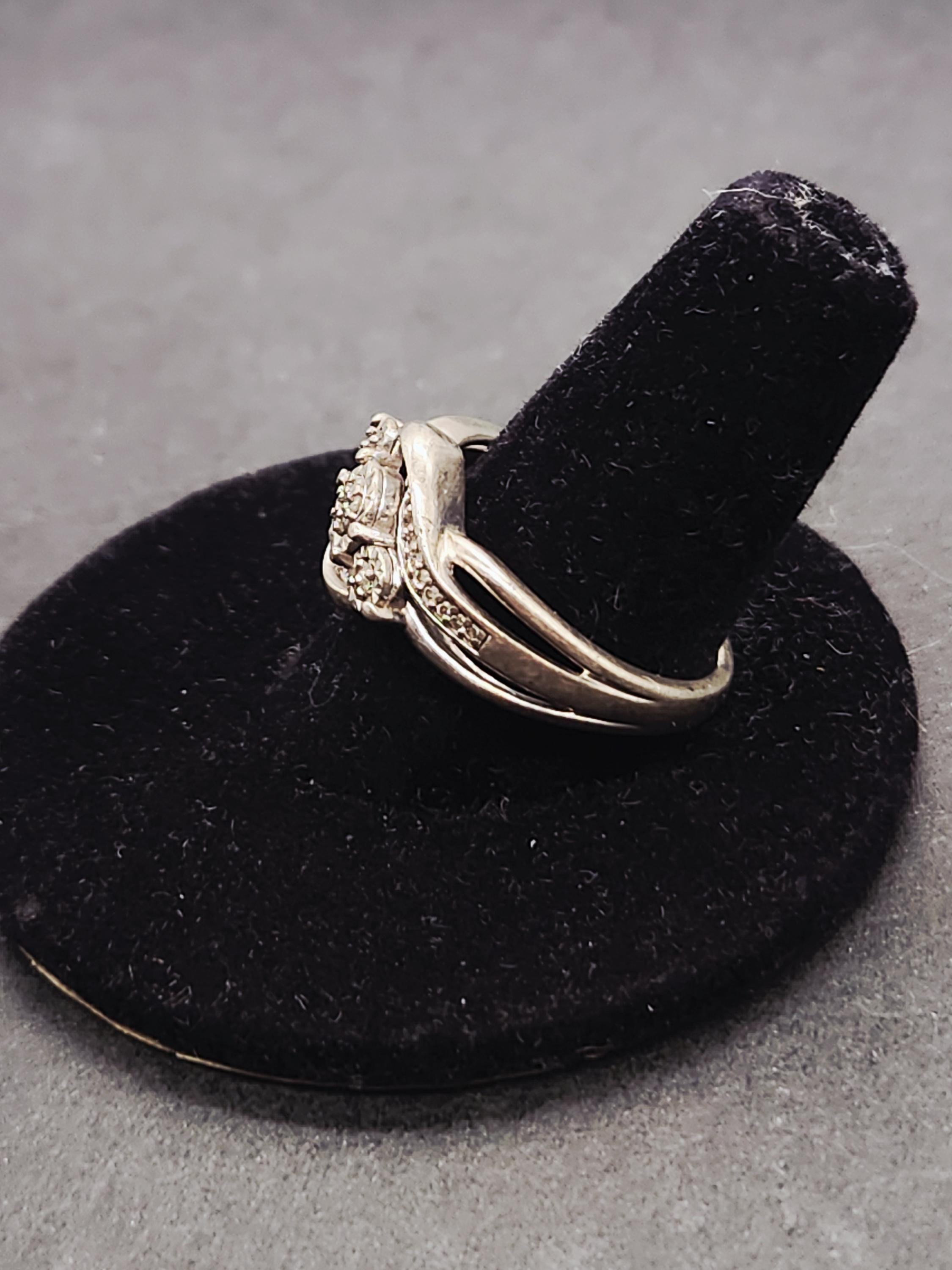 Step into timeless elegance with this exquisite Vintage Sterling Silver Swirl Cluster Engagement Ring. A true testament to classic design, this stunning piece features a dazzling 1/10 carat Total Carat Weight (TCW) of genuine diamonds, meticulously set in a captivating swirl cluster pattern. The brilliant diamonds catch the light beautifully, creating an enchanting sparkle that will surely turn heads.